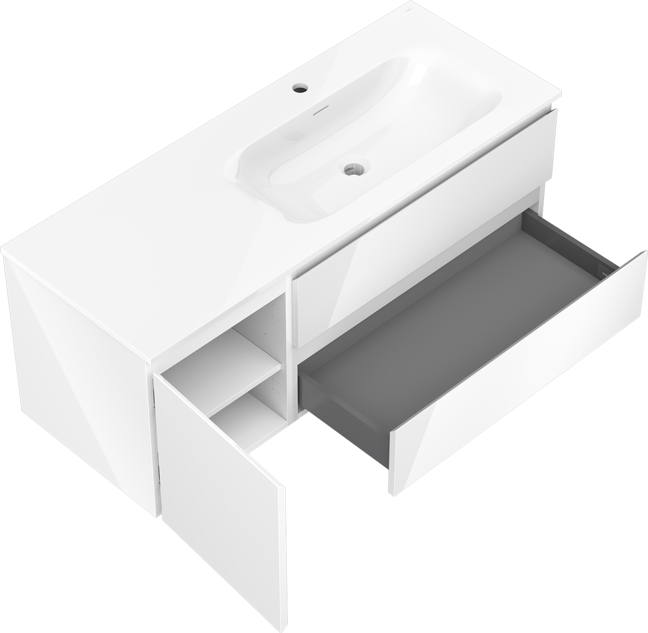 Výrez v zásuvke je navrhnutý tak, aby pojal sifón, ktorý je nevyhnutný v umývadlových inštaláciách. Vďaka tomu môže byť nábytok namontovaný plne funkčne, bez nutnosti vzdávať sa priestoru v zásuvke v prospech inštalácie.