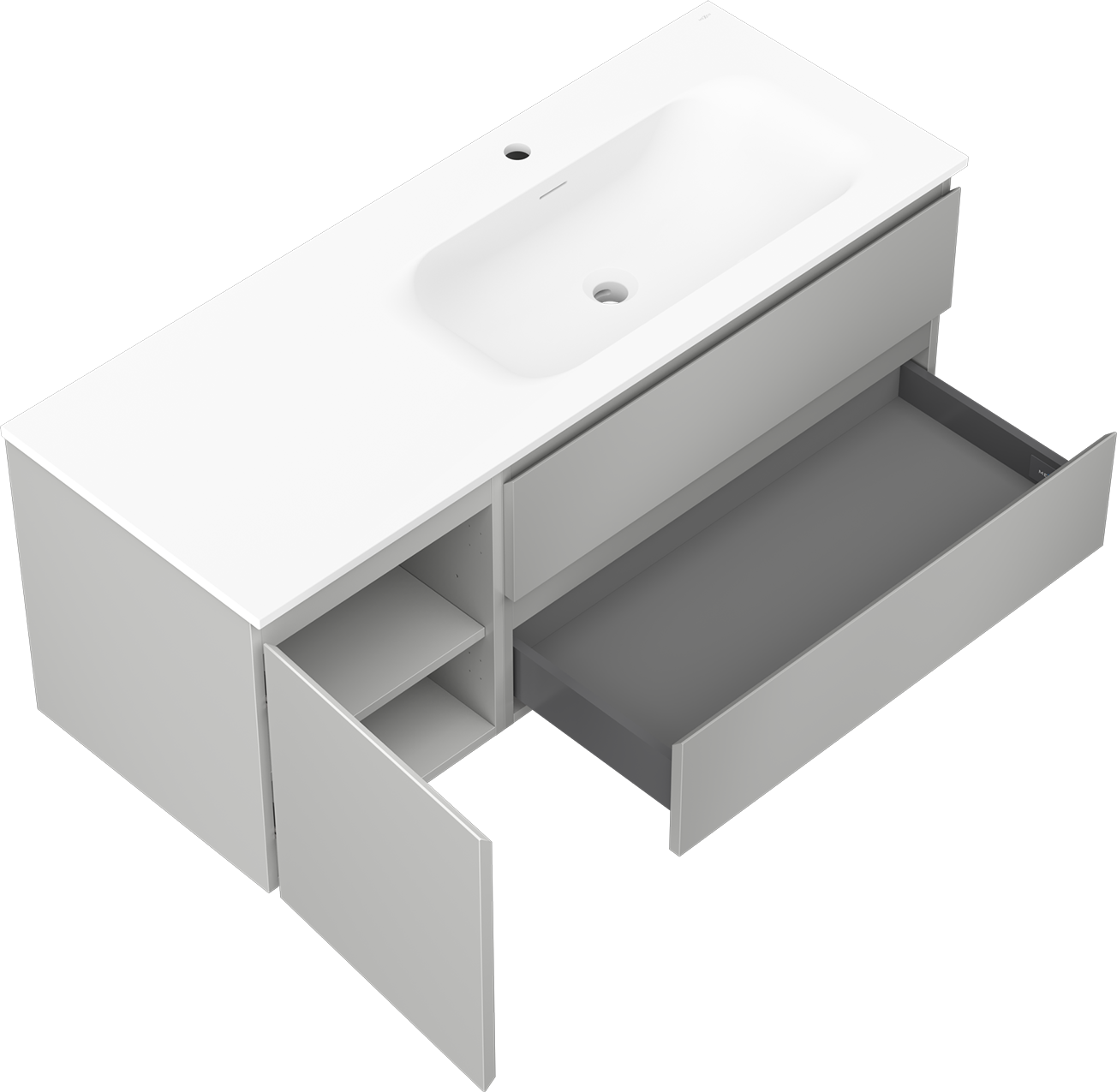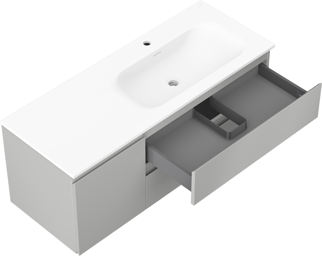 Výrez v zásuvke je navrhnutý tak, aby pojal sifón, ktorý je nevyhnutný v umývadlových inštaláciách. Vďaka tomu môže byť nábytok namontovaný plne funkčne, bez nutnosti vzdávať sa priestoru v zásuvke v prospech inštalácie.