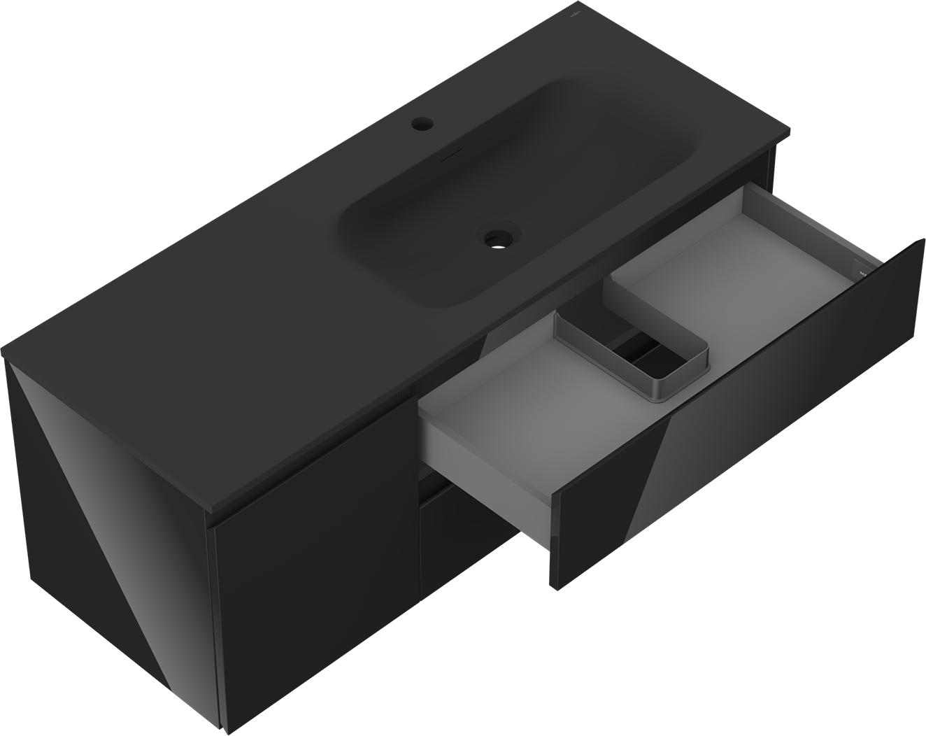 Výrez v zásuvke je navrhnutý tak, aby pojal sifón, ktorý je nevyhnutný v umývadlových inštaláciách. Vďaka tomu môže byť nábytok namontovaný plne funkčne, bez nutnosti vzdávať sa priestoru v zásuvke v prospech inštalácie.
