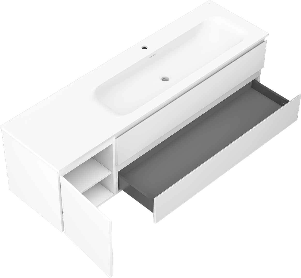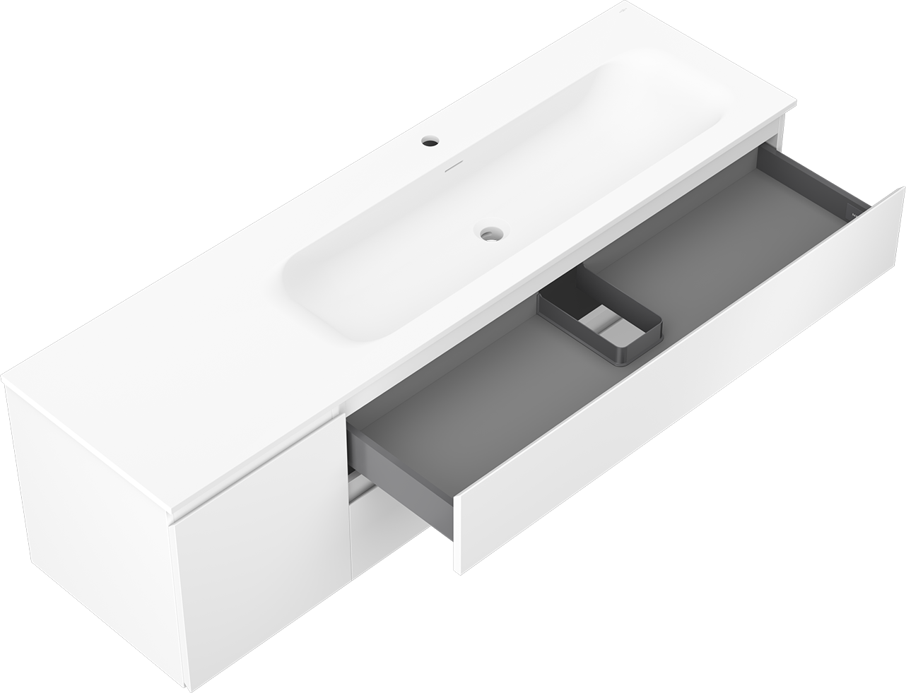 Výrez v zásuvke je navrhnutý tak, aby pojal sifón, ktorý je nevyhnutný v umývadlových inštaláciách. Vďaka tomu môže byť nábytok namontovaný plne funkčne, bez nutnosti vzdávať sa priestoru v zásuvke v prospech inštalácie.