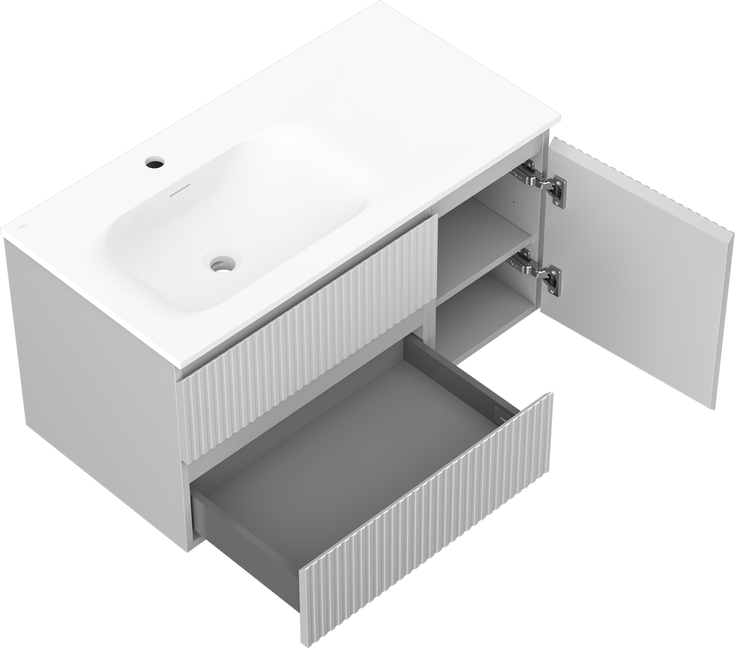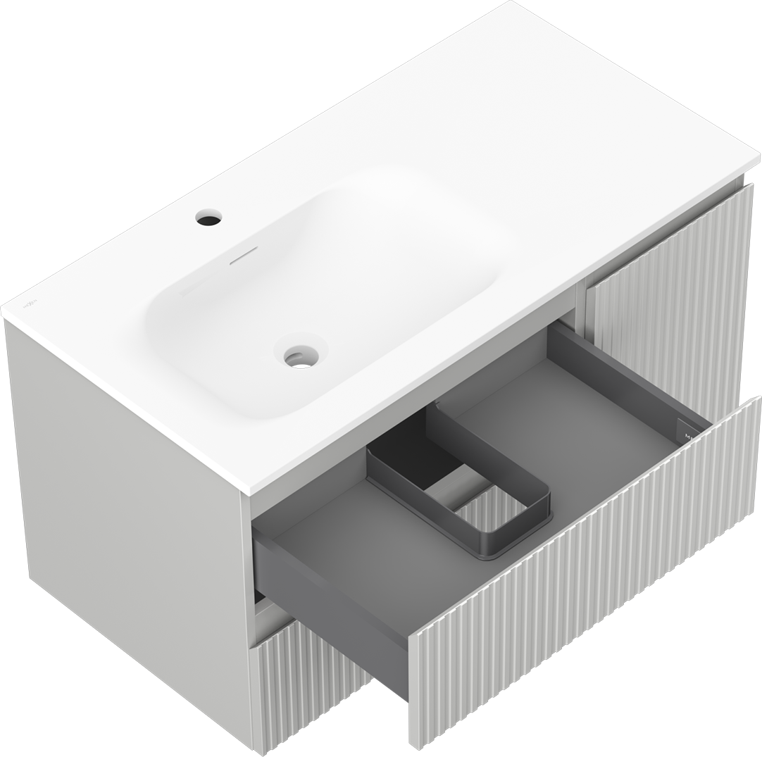 Výrez v zásuvke je navrhnutý tak, aby pojal sifón, ktorý je nevyhnutný v umývadlových inštaláciách. Vďaka tomu môže byť nábytok namontovaný plne funkčne, bez nutnosti vzdávať sa priestoru v zásuvke v prospech inštalácie.