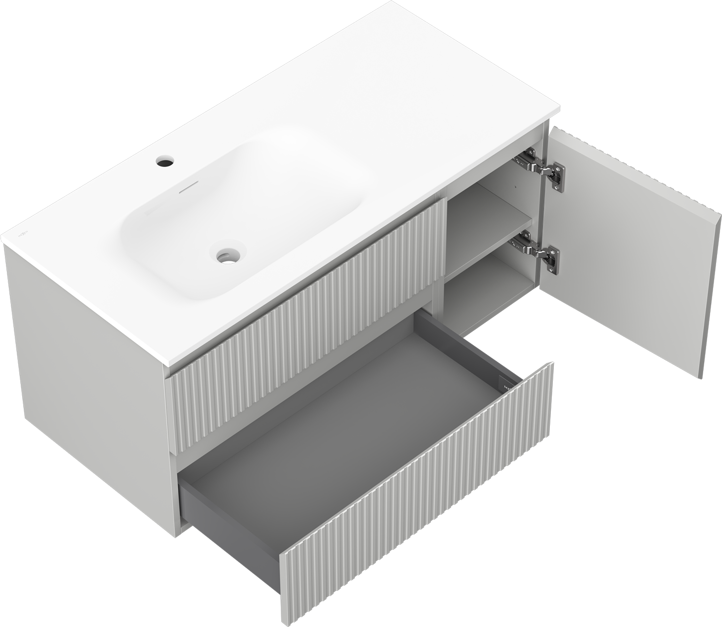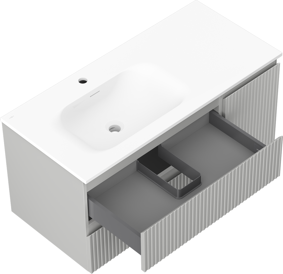 Výrez v zásuvke je navrhnutý tak, aby pojal sifón, ktorý je nevyhnutný v umývadlových inštaláciách. Vďaka tomu môže byť nábytok namontovaný plne funkčne, bez nutnosti vzdávať sa priestoru v zásuvke v prospech inštalácie.