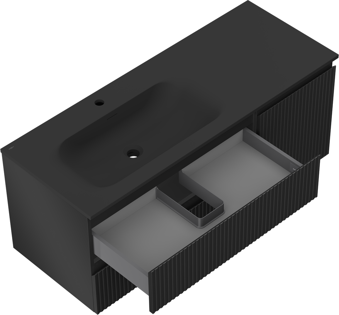 Výrez v zásuvke je navrhnutý tak, aby pojal sifón, ktorý je nevyhnutný v umývadlových inštaláciách. Vďaka tomu môže byť nábytok namontovaný plne funkčne, bez nutnosti vzdávať sa priestoru v zásuvke v prospech inštalácie.