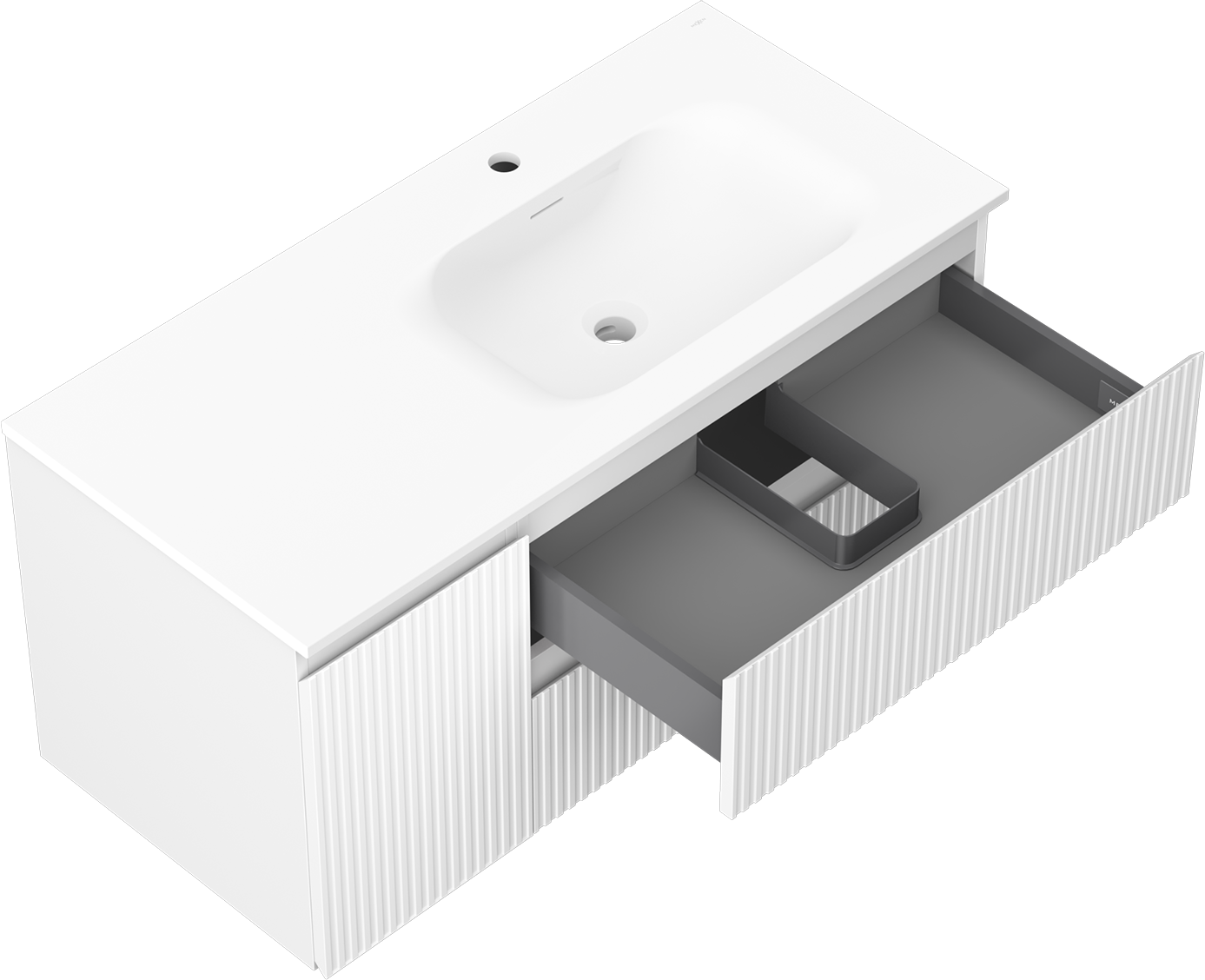 Výrez v zásuvke je navrhnutý tak, aby pojal sifón, ktorý je nevyhnutný v umývadlových inštaláciách. Vďaka tomu môže byť nábytok namontovaný plne funkčne, bez nutnosti vzdávať sa priestoru v zásuvke v prospech inštalácie.
