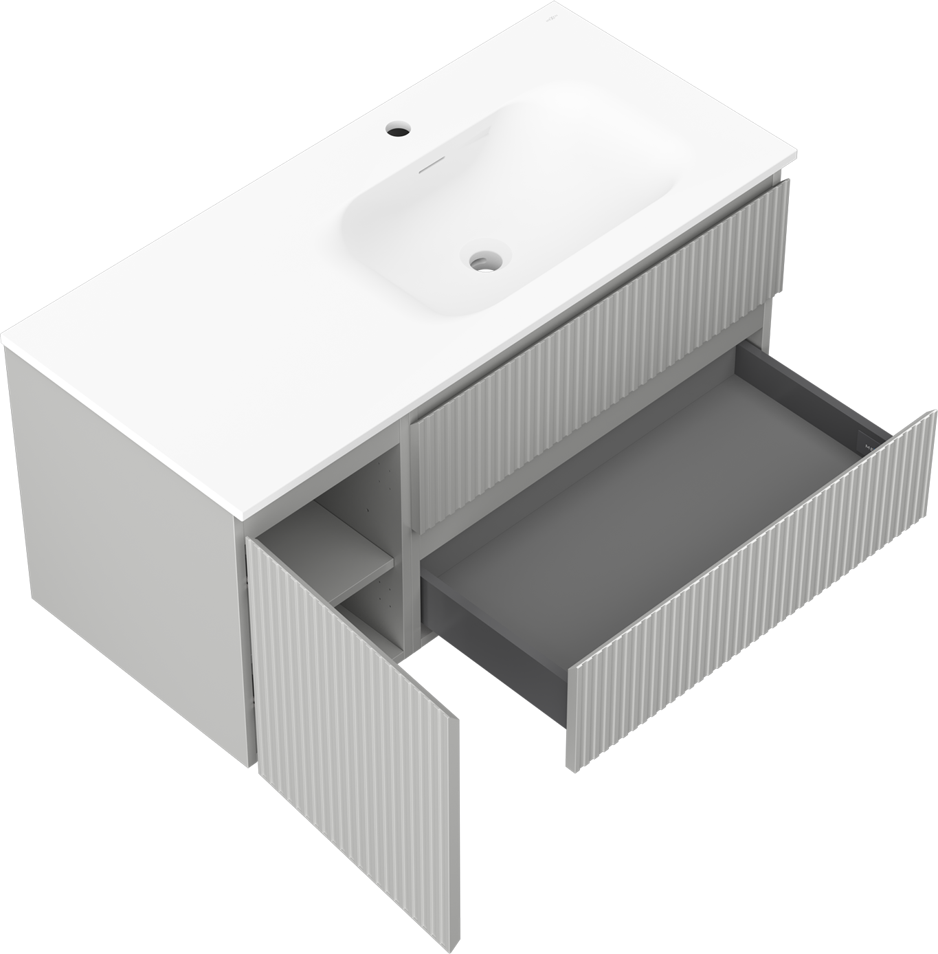 Výrez v zásuvke je navrhnutý tak, aby pojal sifón, ktorý je nevyhnutný v umývadlových inštaláciách. Vďaka tomu môže byť nábytok namontovaný plne funkčne, bez nutnosti vzdávať sa priestoru v zásuvke v prospech inštalácie.