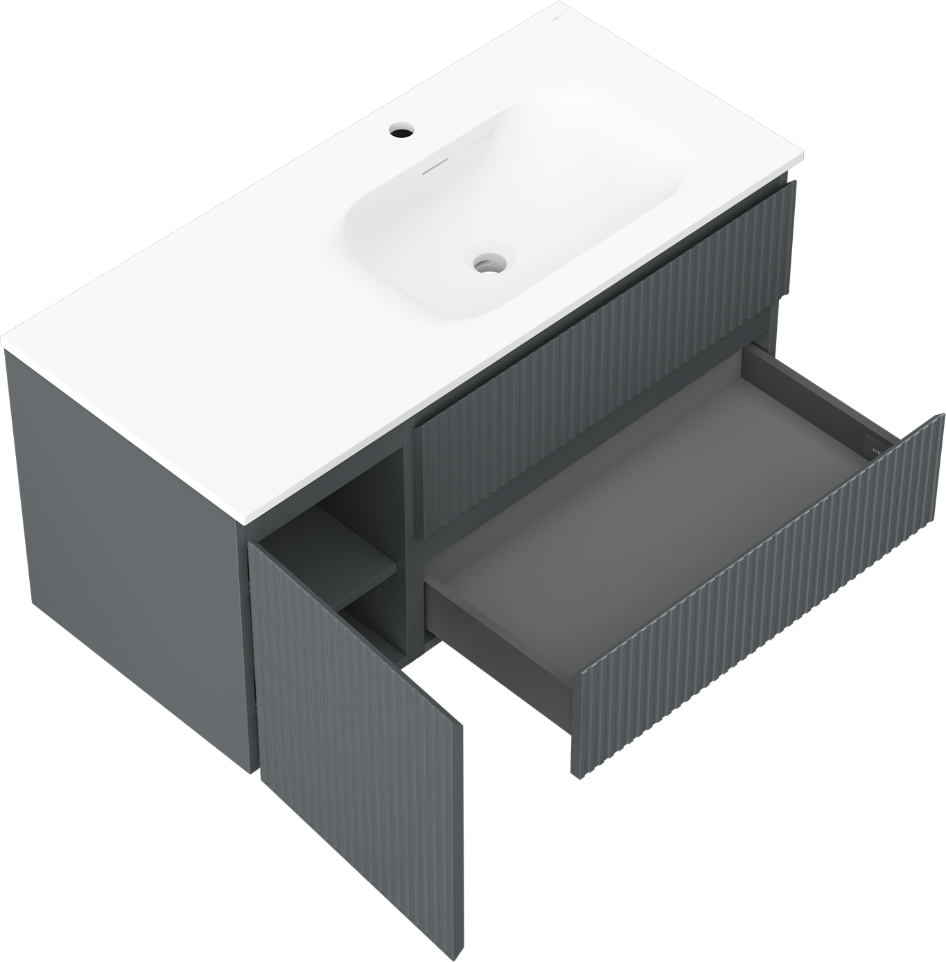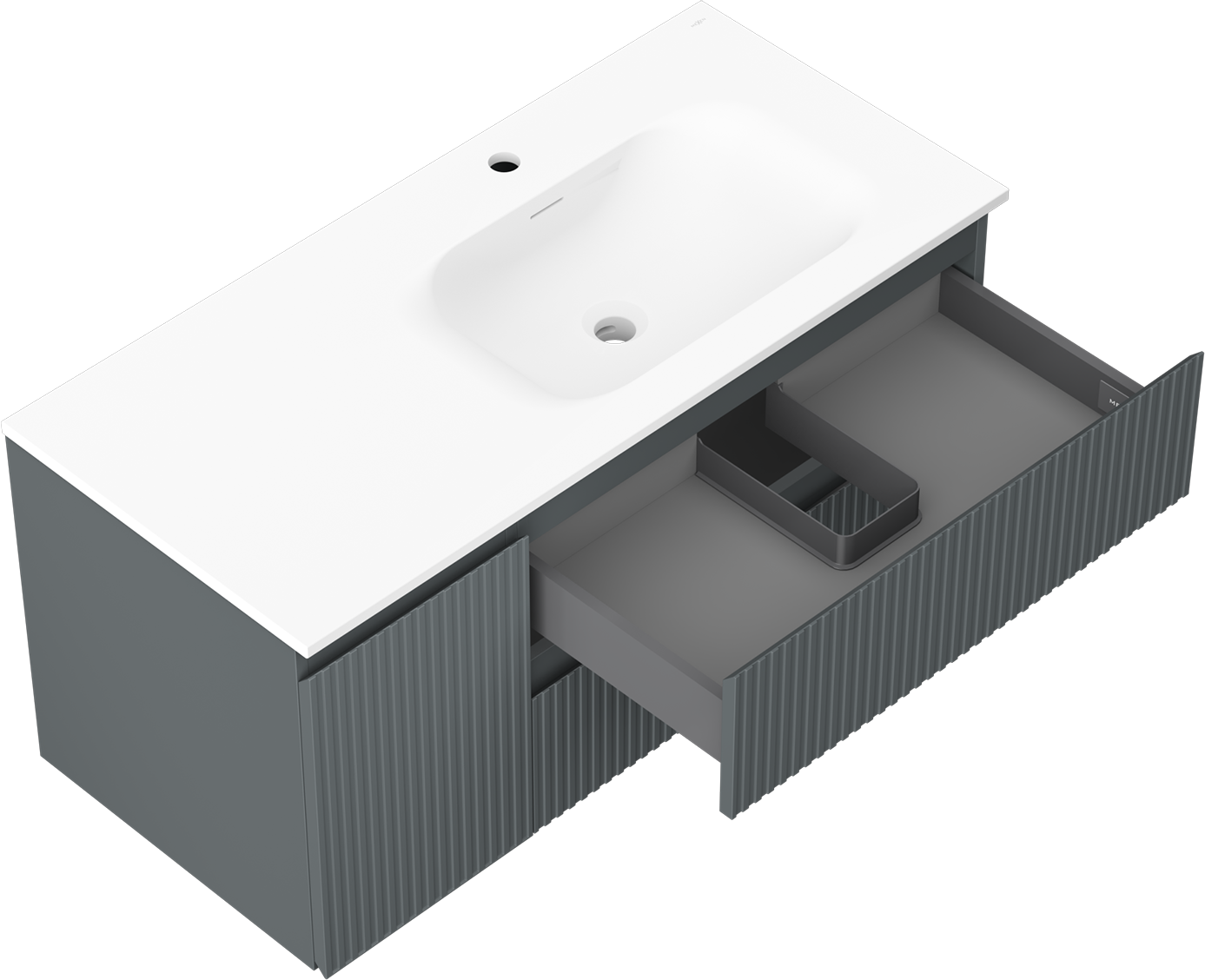 Výrez v zásuvke je navrhnutý tak, aby pojal sifón, ktorý je nevyhnutný v umývadlových inštaláciách. Vďaka tomu môže byť nábytok namontovaný plne funkčne, bez nutnosti vzdávať sa priestoru v zásuvke v prospech inštalácie.