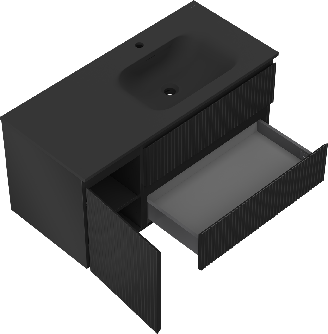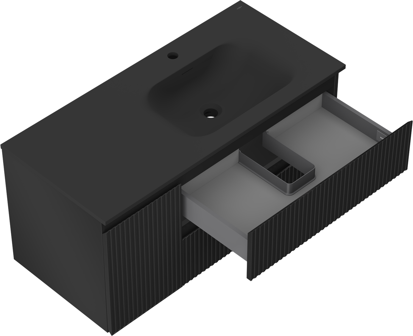 Výrez v zásuvke je navrhnutý tak, aby pojal sifón, ktorý je nevyhnutný v umývadlových inštaláciách. Vďaka tomu môže byť nábytok namontovaný plne funkčne, bez nutnosti vzdávať sa priestoru v zásuvke v prospech inštalácie.