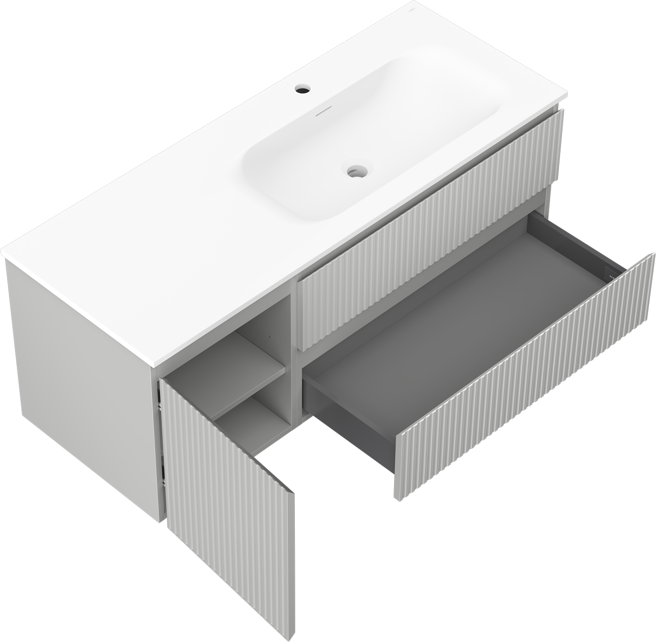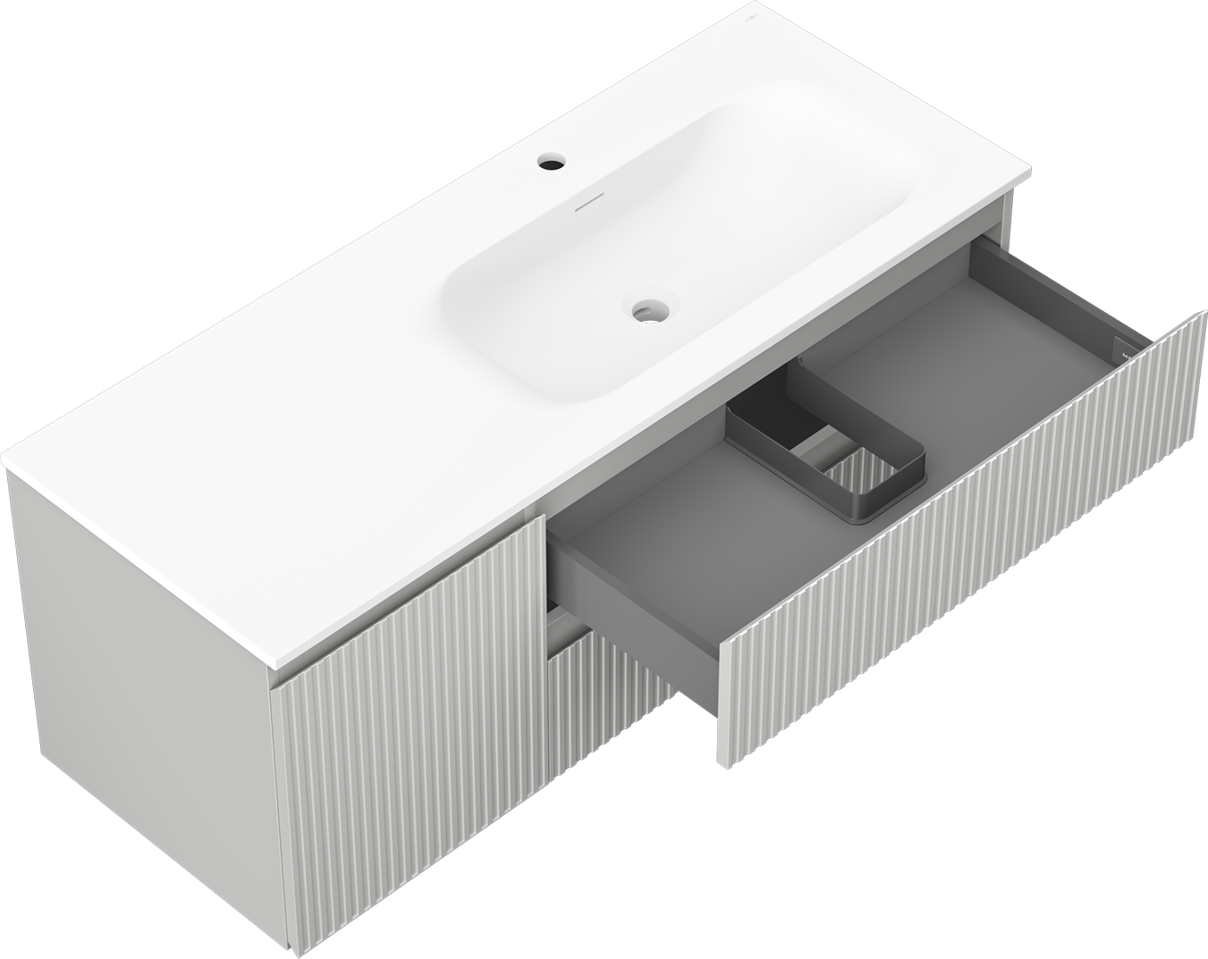 Výrez v zásuvke je navrhnutý tak, aby pojal sifón, ktorý je nevyhnutný v umývadlových inštaláciách. Vďaka tomu môže byť nábytok namontovaný plne funkčne, bez nutnosti vzdávať sa priestoru v zásuvke v prospech inštalácie.