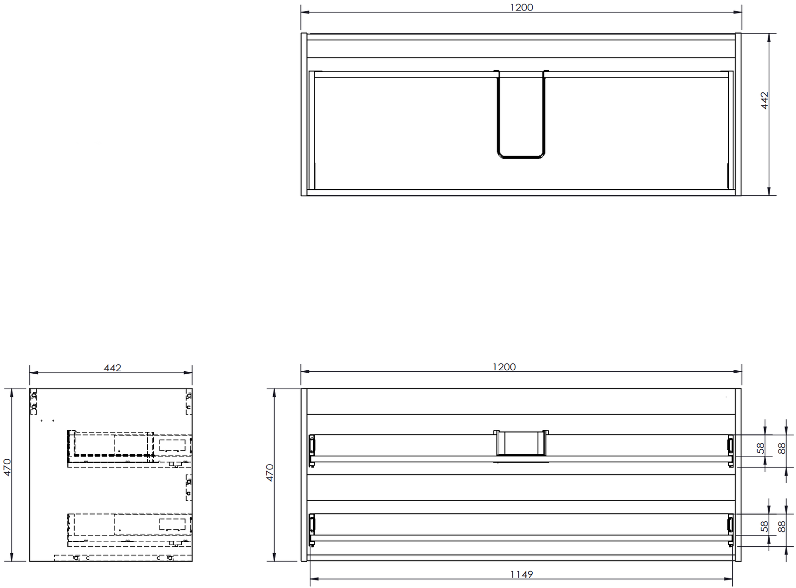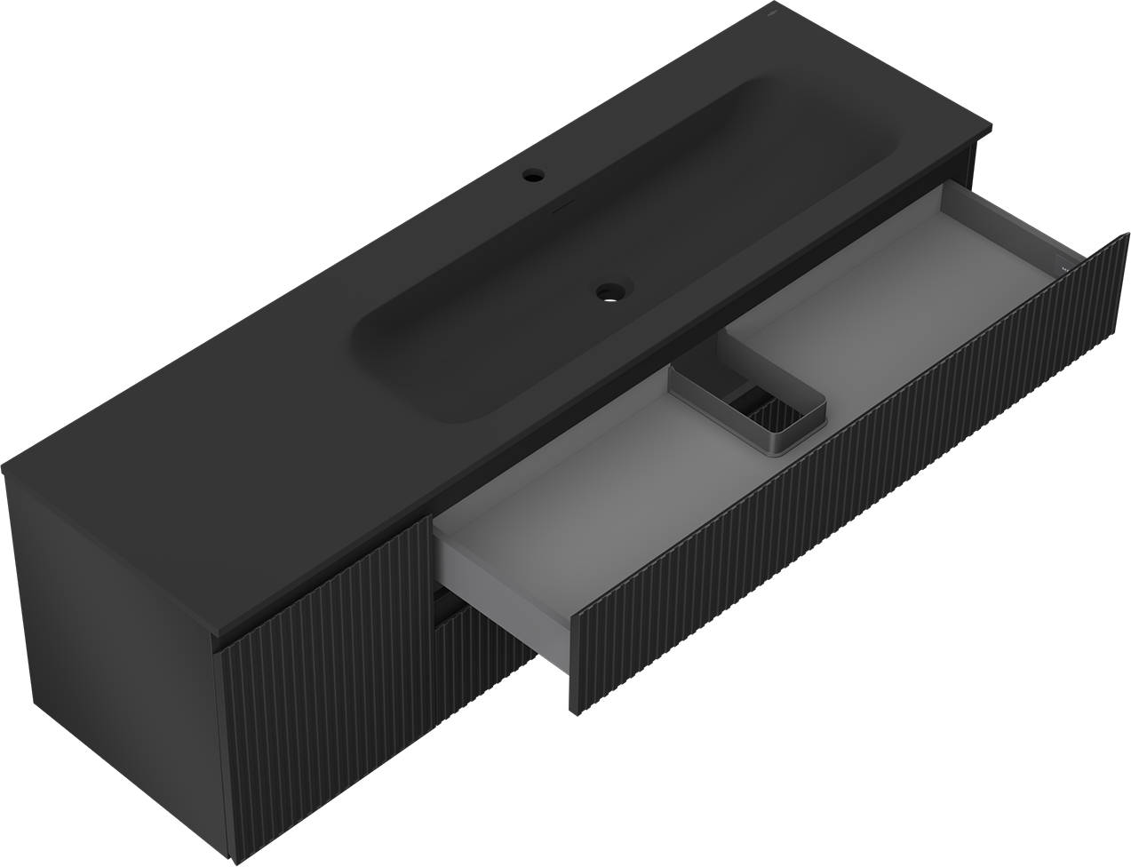 Výrez v zásuvke je navrhnutý tak, aby pojal sifón, ktorý je nevyhnutný v umývadlových inštaláciách. Vďaka tomu môže byť nábytok namontovaný plne funkčne, bez nutnosti vzdávať sa priestoru v zásuvke v prospech inštalácie.