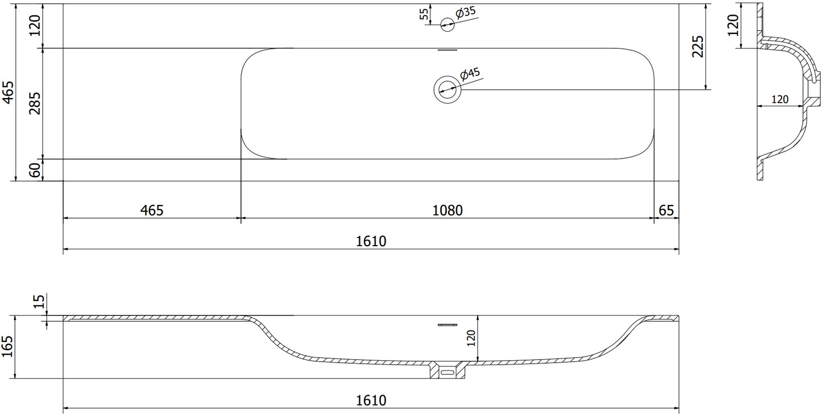 Prepadový otvor sa nazýva "bezpečnostný otvor". Cez neho odchádza prebytočná voda, vďaka čomu sa voda nedostane cez okraj produktu, keď je dolný odtok uzavretý. Je to veľmi bezpečné a praktické riešenie.