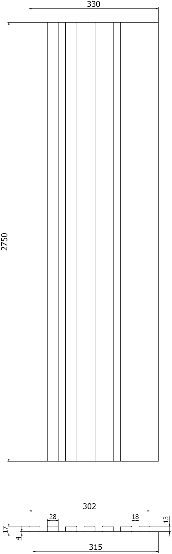 Rozstup medzi lamelami: 18 mm