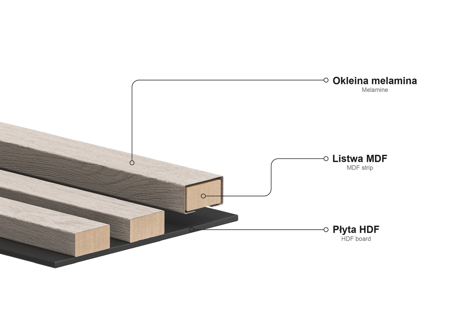 Materiál lamiel: MDF lišta + melamínová dyha