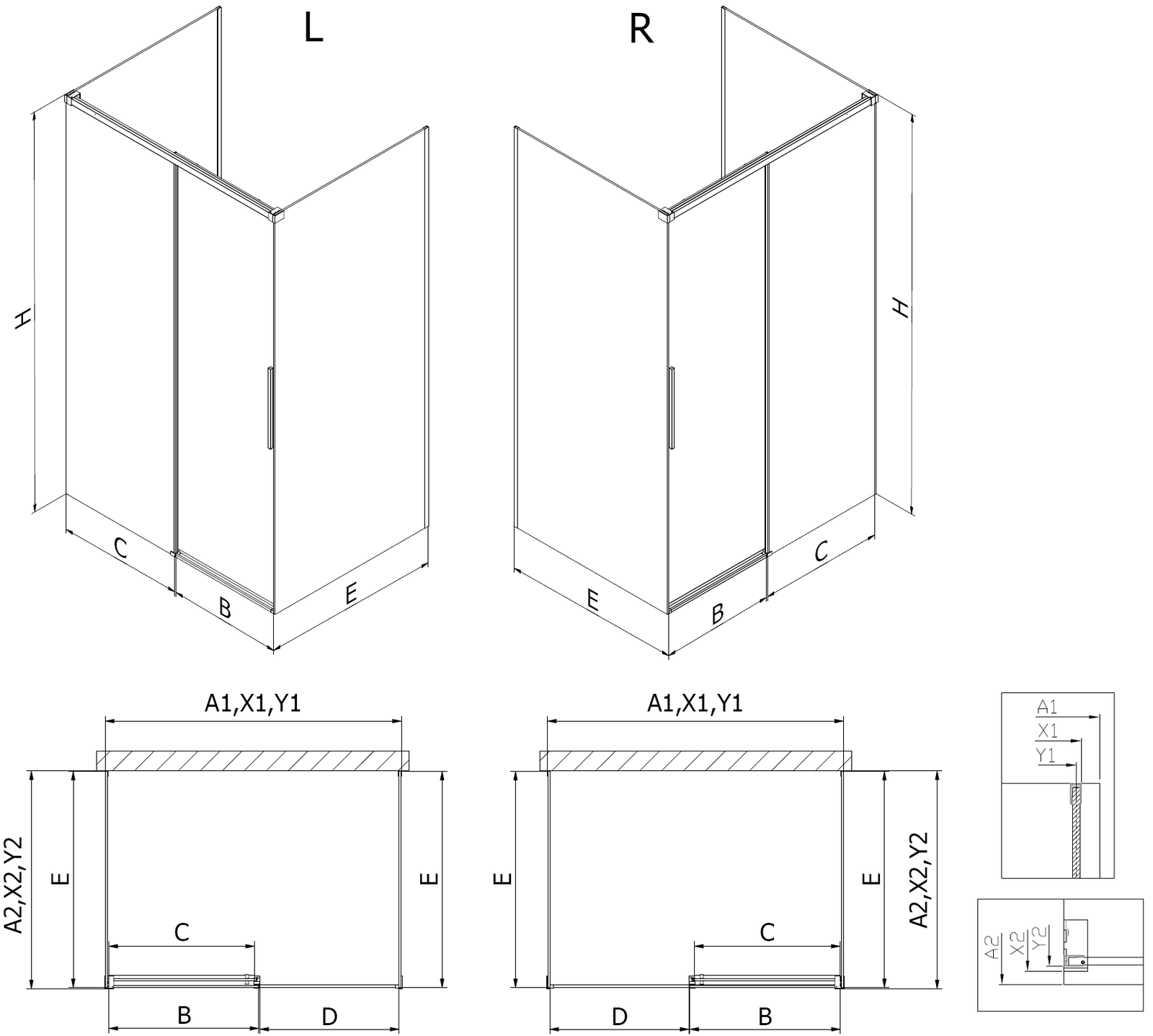 Sprchové kúty, dvere a steny sú štandardne prispôsobené na montáž na sprchové vaničky určitých rozmerov. Práve tieto rozmery sú uvedené v názve alebo popise produktu. Je však potrebné mať na pamäti, že skutočné rozmery prvkov sa môžu mierne líšiť od nominálnych hodnôt. V prípade plánovanej montáže priamo na podlahu sa odporúča dôkladne skontrolovať vonkajšie rozmery a rozmiestnenie prvkov podľa technického nákresu.