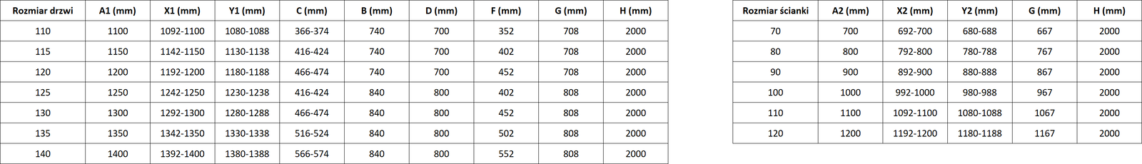 Veľkosť: 90x90 cm (dvere ľavé 90 cm, stena 90 cm)