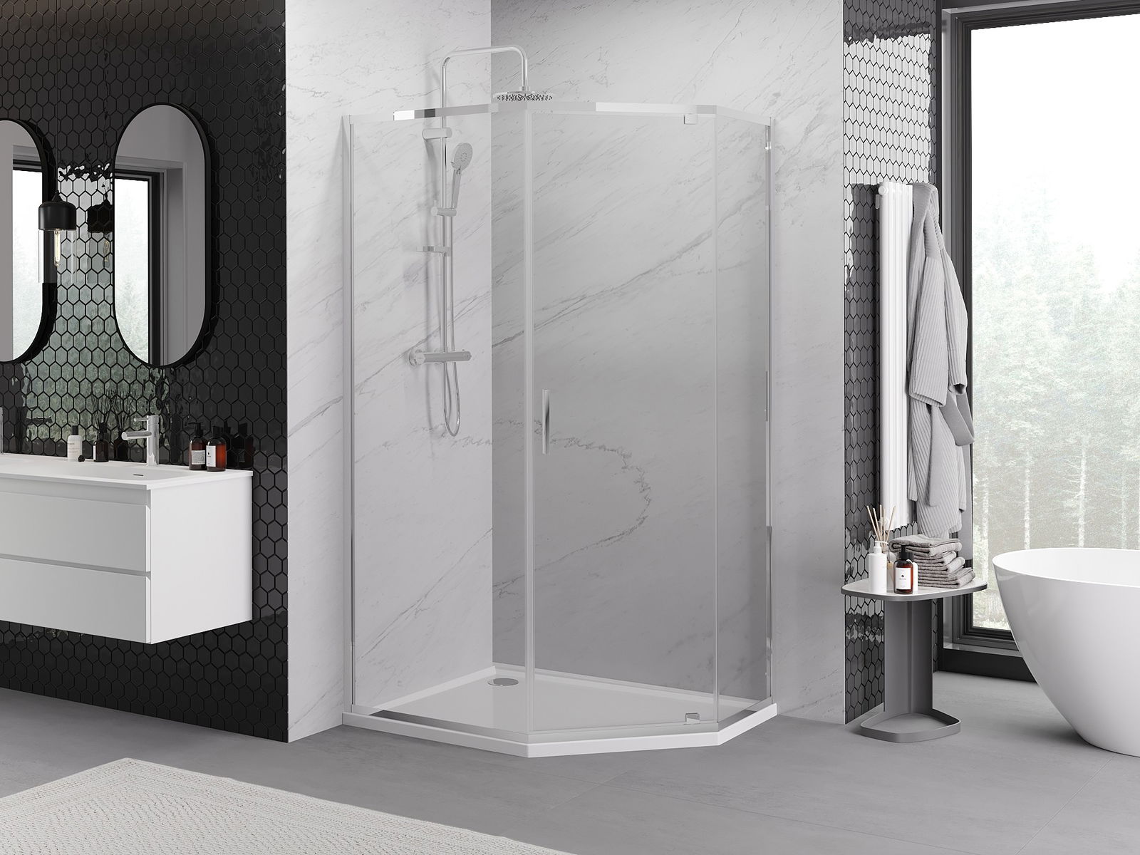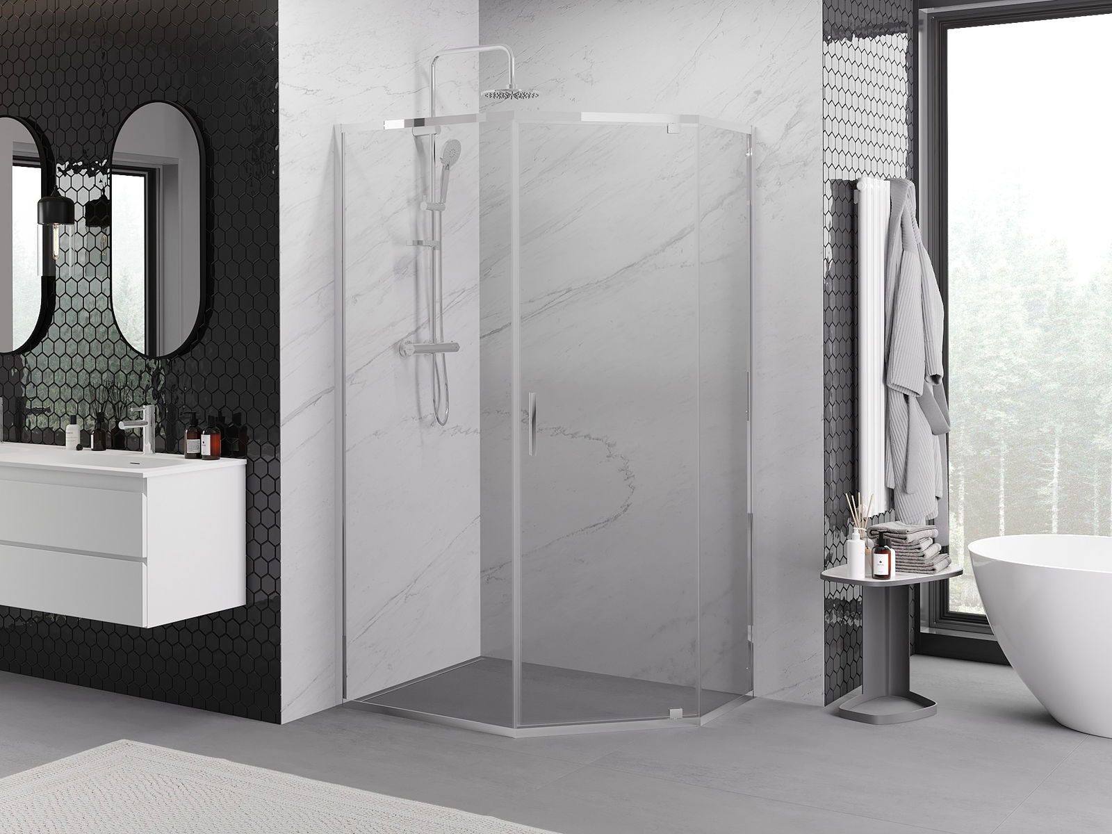 Mexen Exo pätuholový sprchový kút s otváracími dverami 100 x 90 cm, transparentný, chróm - 812-100-090-01-00