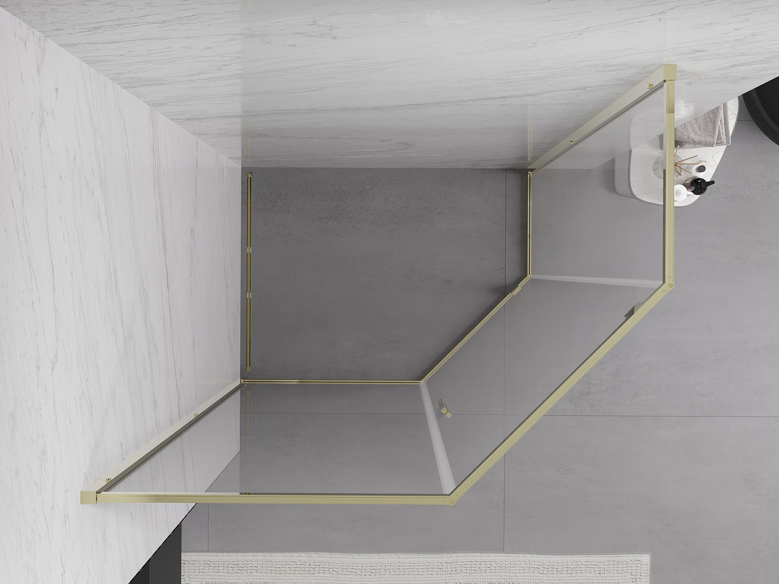 Mexen Exo päťuholníková sprchová kabína s otváracími dverami 100 x 80 cm, priehľadná, zlatá - 812-100-080-50-00