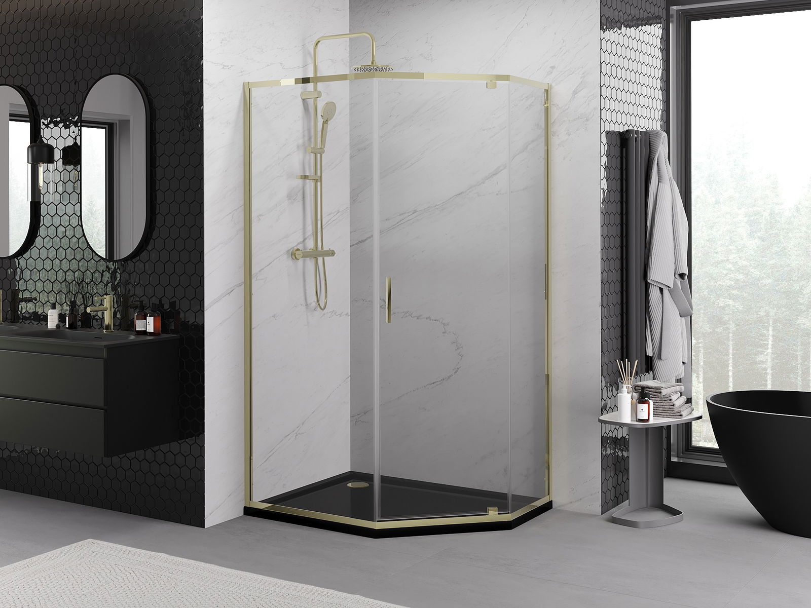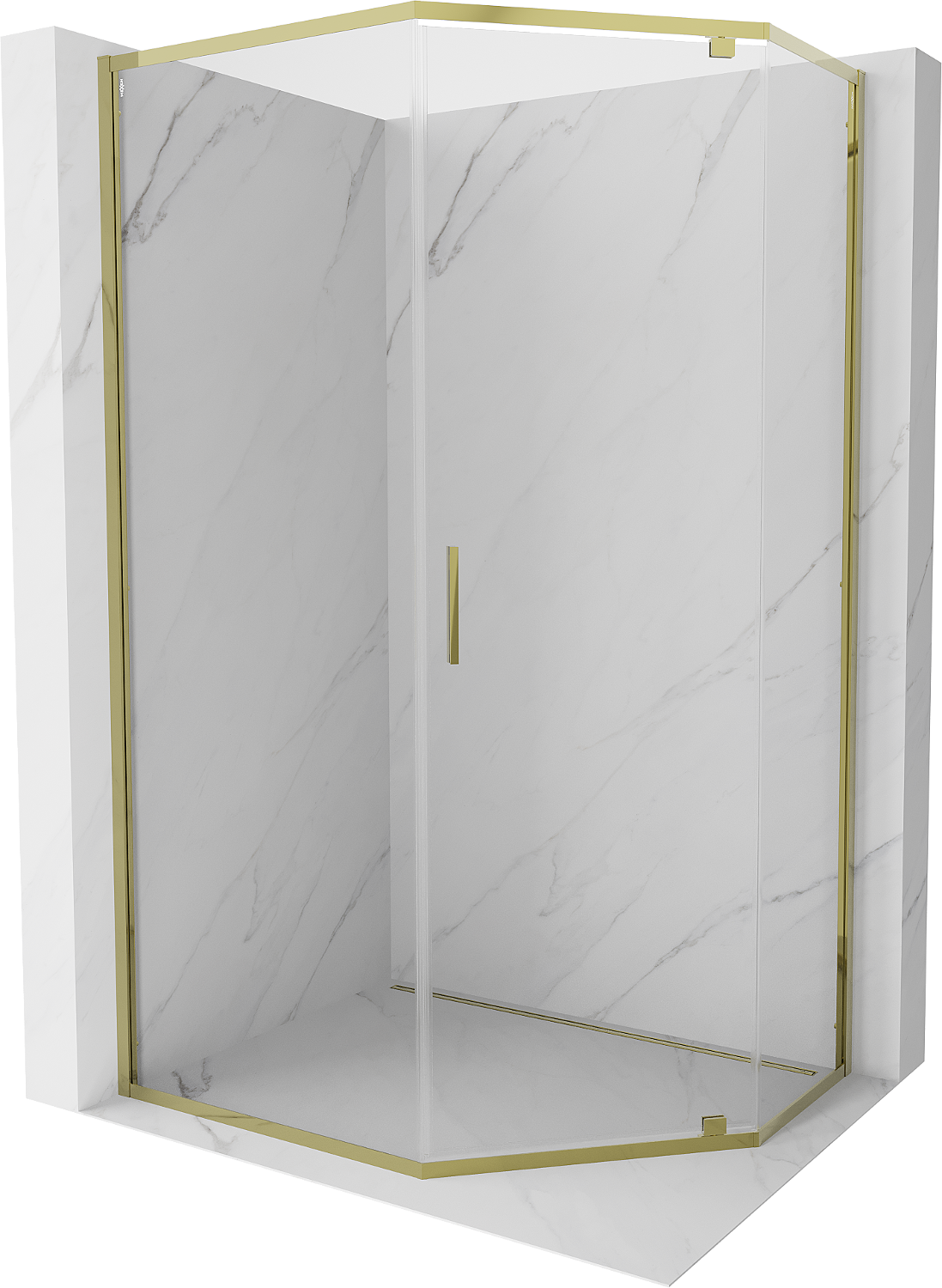 Mexen Exo päťuholníková sprchová kabína otváracia 100 x 90 cm, transparentná, zlatá - 812-100-090-50-00