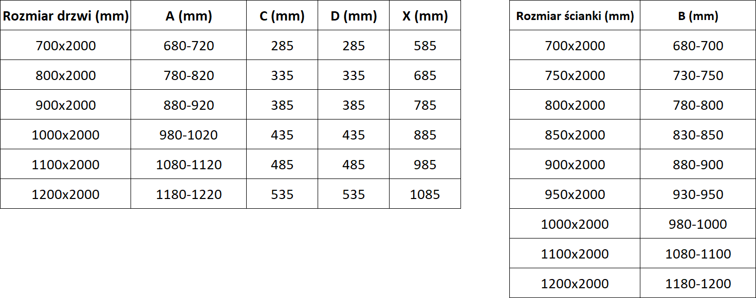 Veľkosť: 120x110 cm (dvere 120 cm, stena 110 cm)