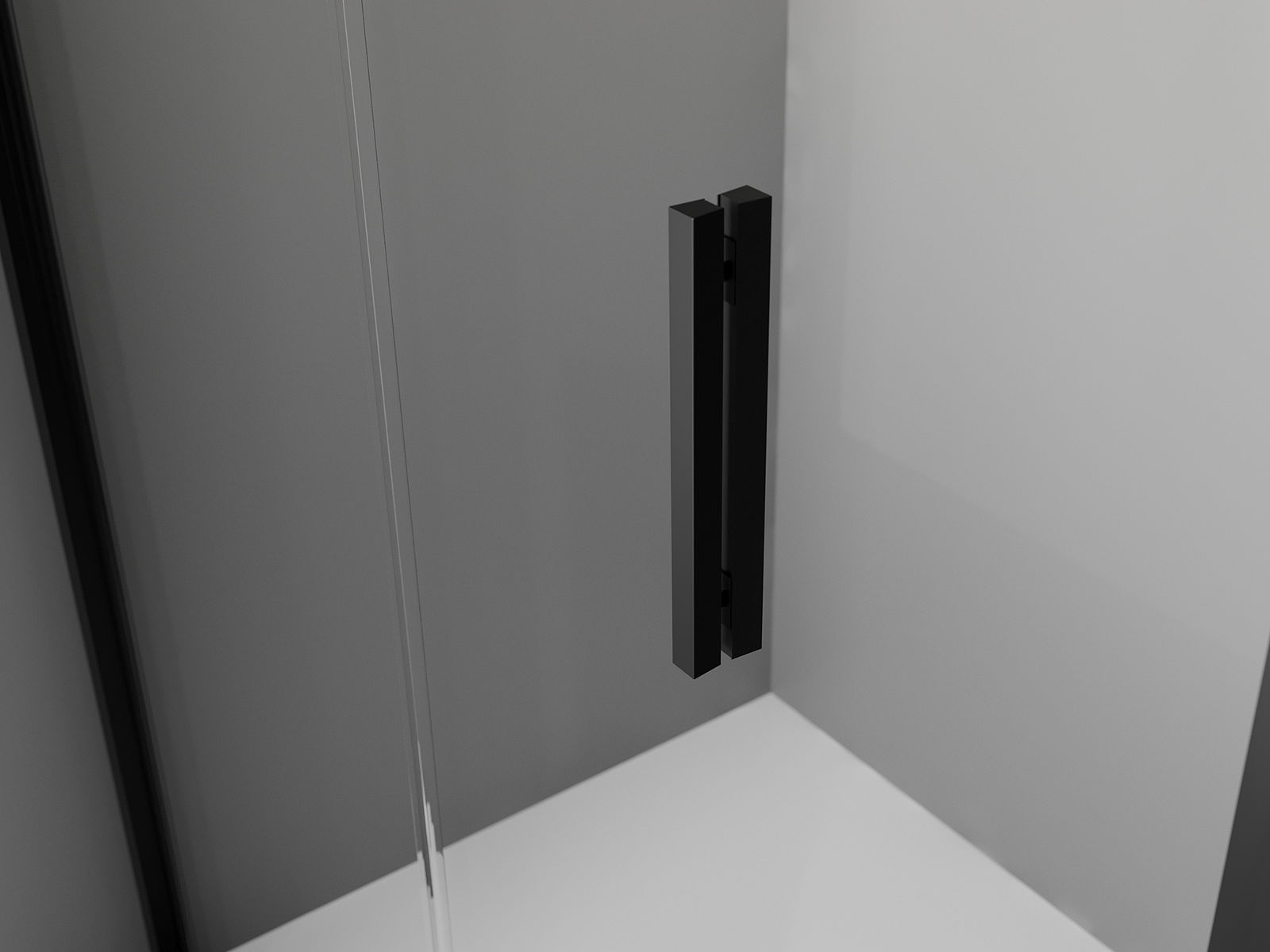 Praktická a pohodlná rukoväť je vyrobená z odolného a pevného kovu. Moderný tvar v kombinácii s povrchovou úpravou prispôsobenou farbe profilov dodáva celku moderný a štýlový vzhľad, zdôrazňujúc estetiku každej kúpeľne.