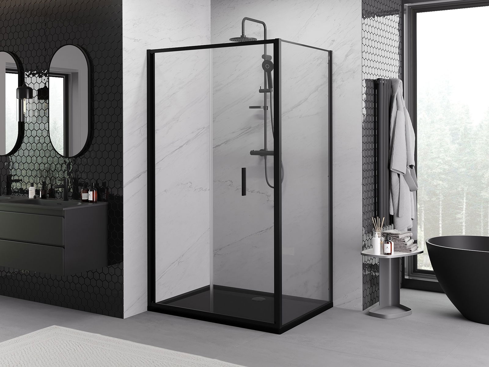 Mexen Rio štvorcový sprchový kút 90 x 90 cm, transparentný, čierny - 860-090-090-70-00