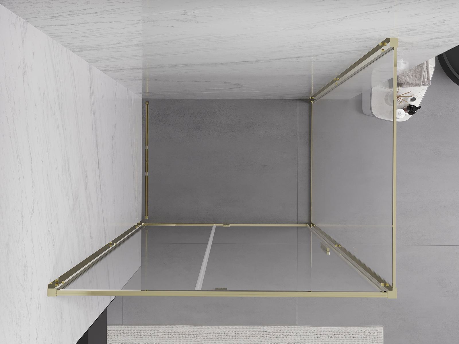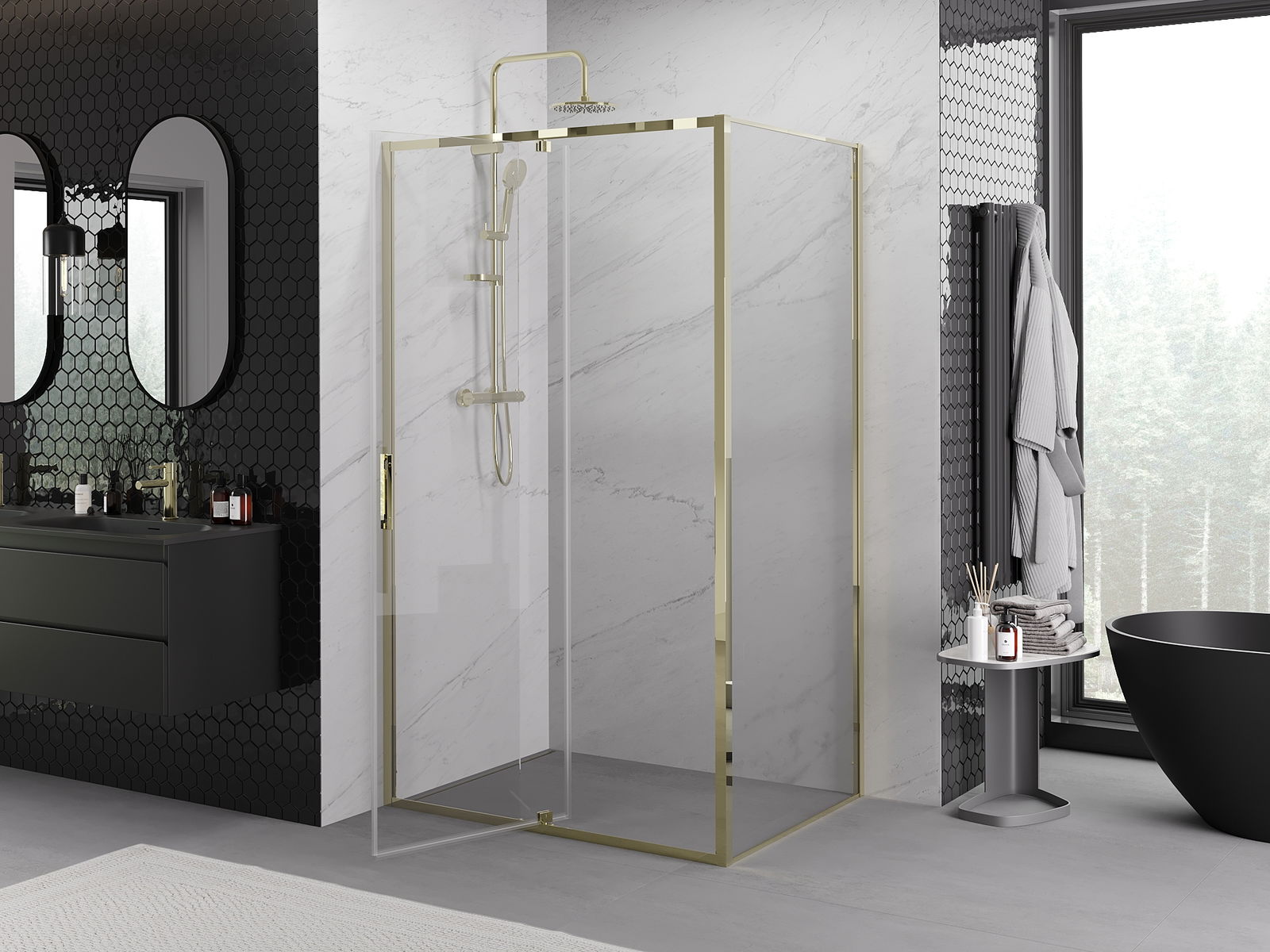 Praktická a pohodlná rukoväť je vyrobená z odolného a pevného kovu. Moderný tvar v kombinácii s povrchovou úpravou prispôsobenou farbe profilov dodáva celku moderný a štýlový vzhľad, zdôrazňujúc estetiku každej kúpeľne.
