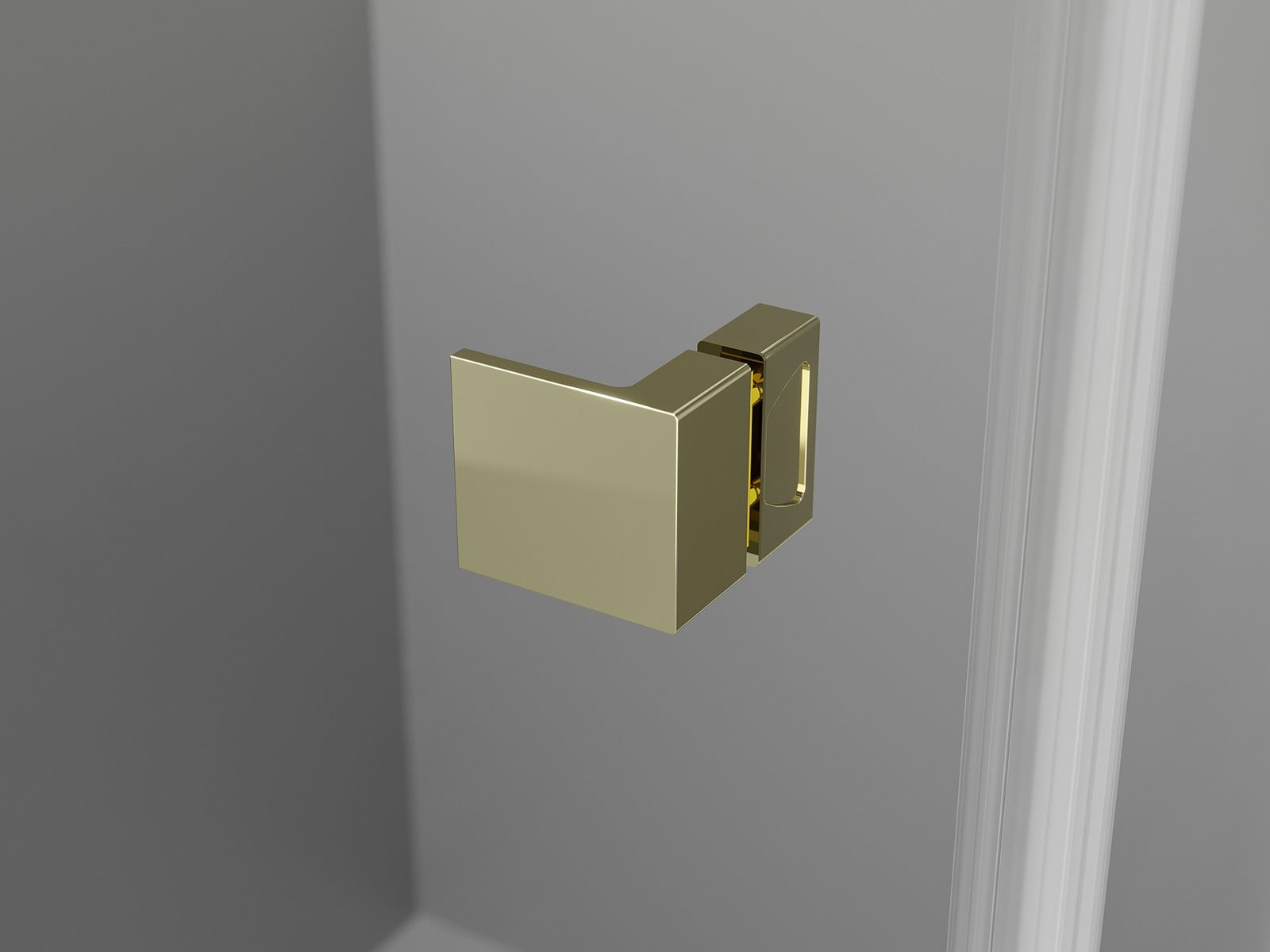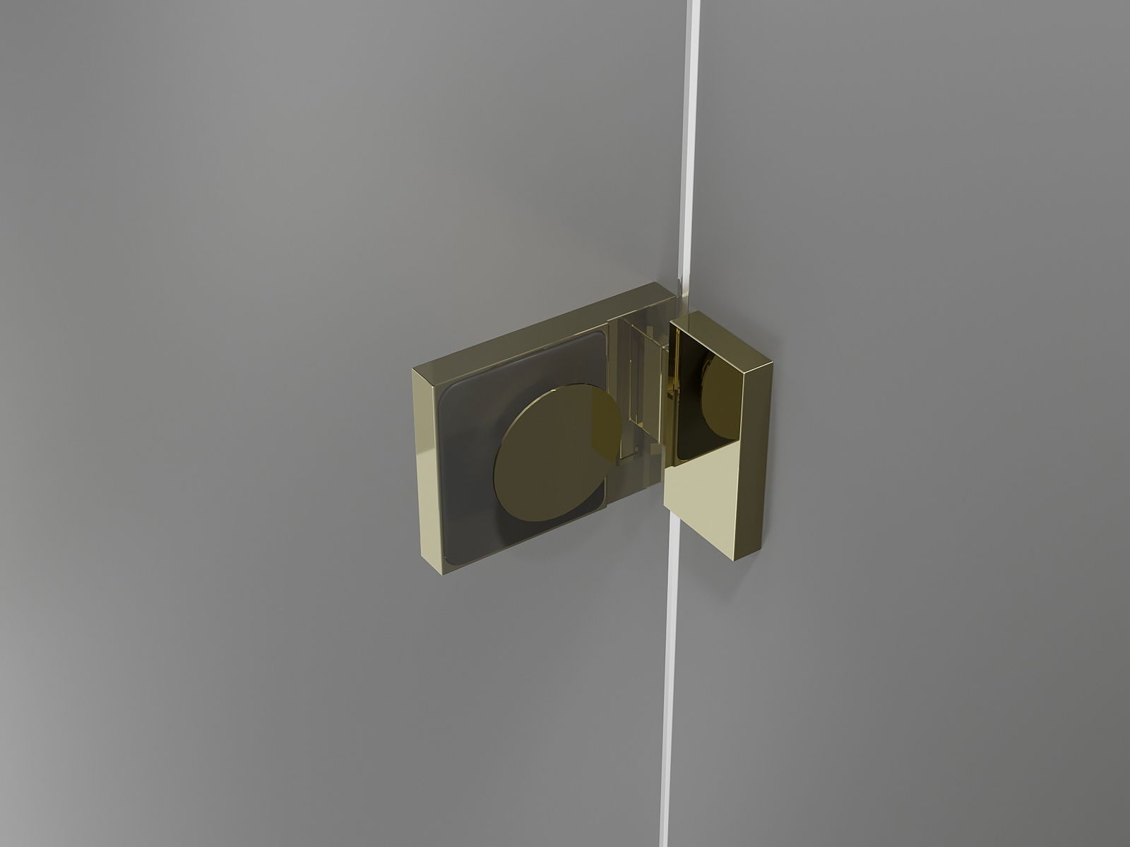 Mosadzné kľučky a pánty v jednej rovine s povrchom skla