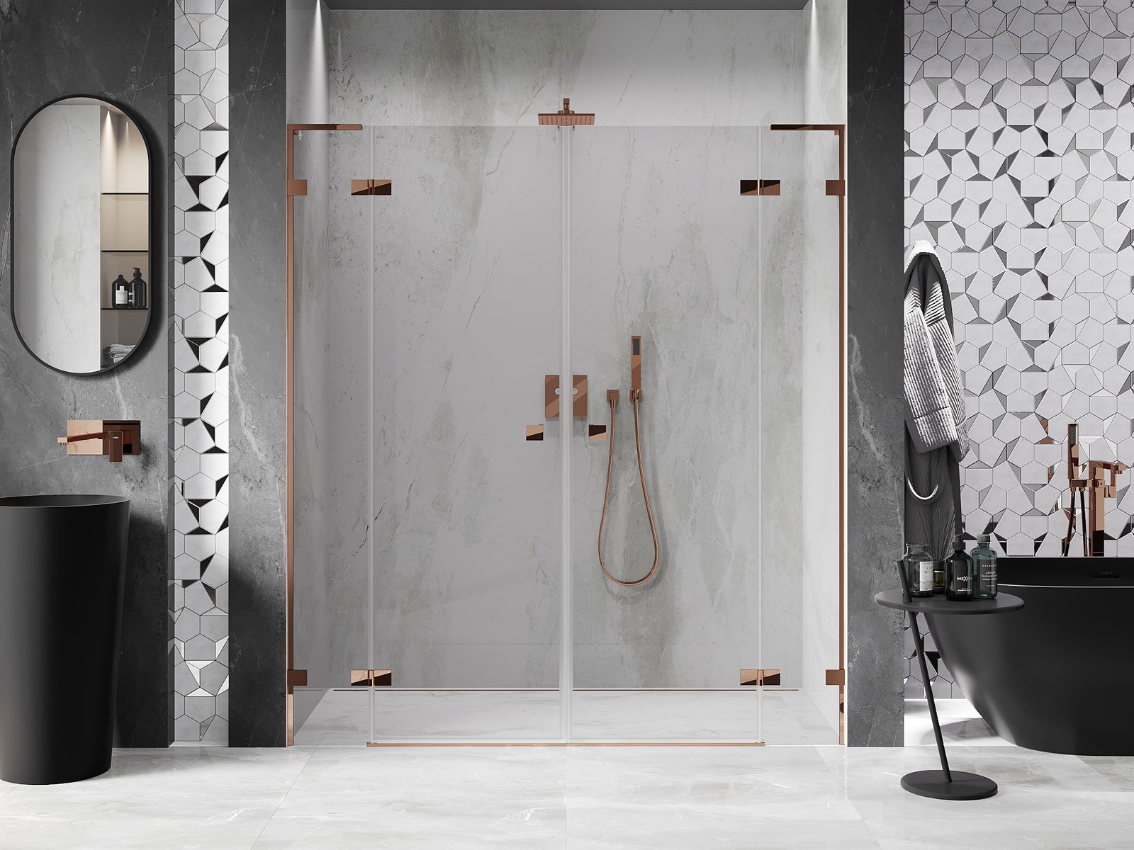 Mexen Rio štvorcový sprchový kút 90 x 90 cm, transparentný, čierny - 860-090-090-70-00