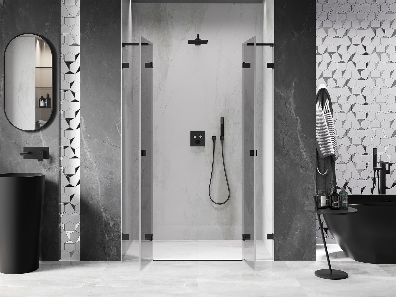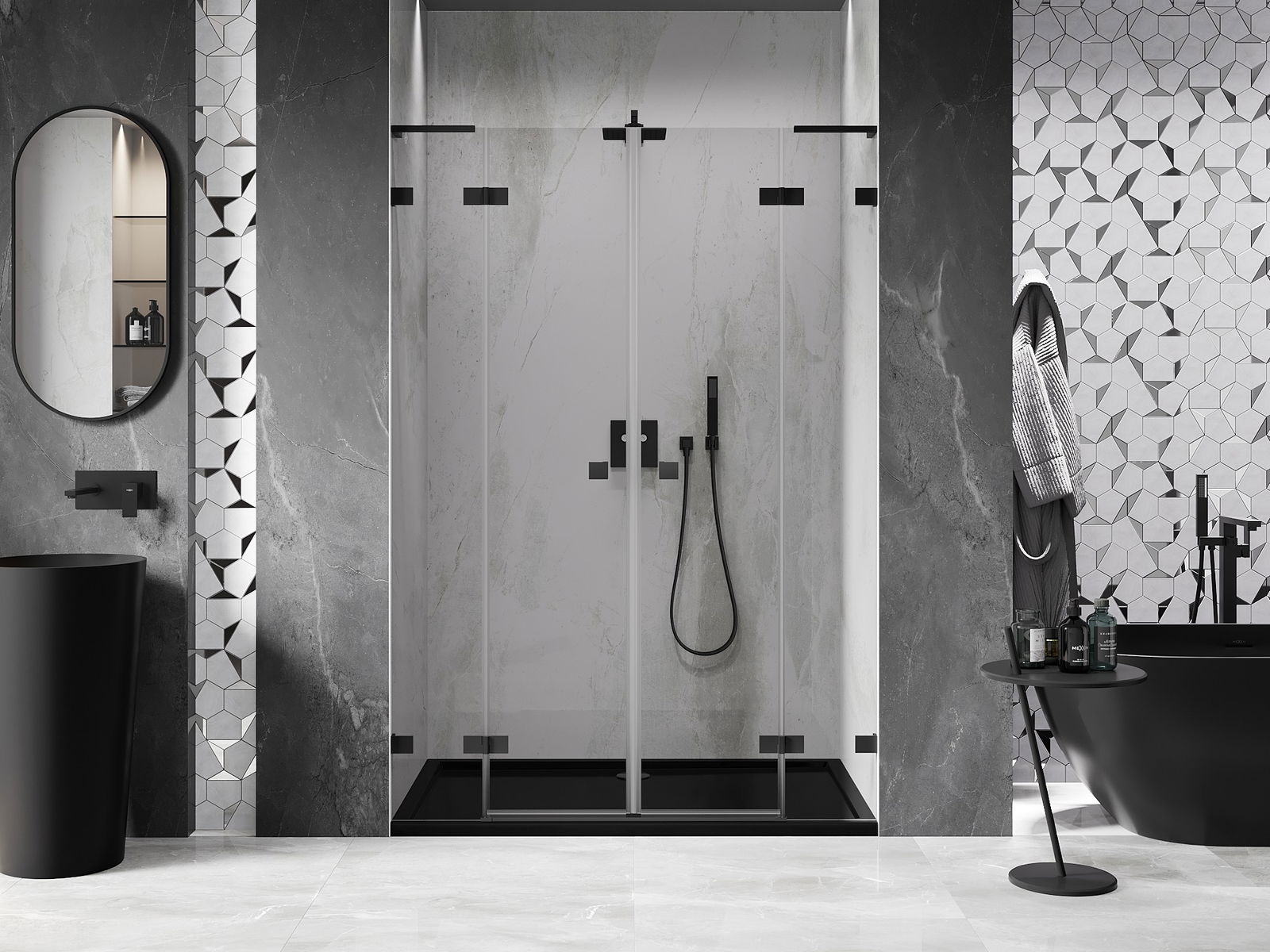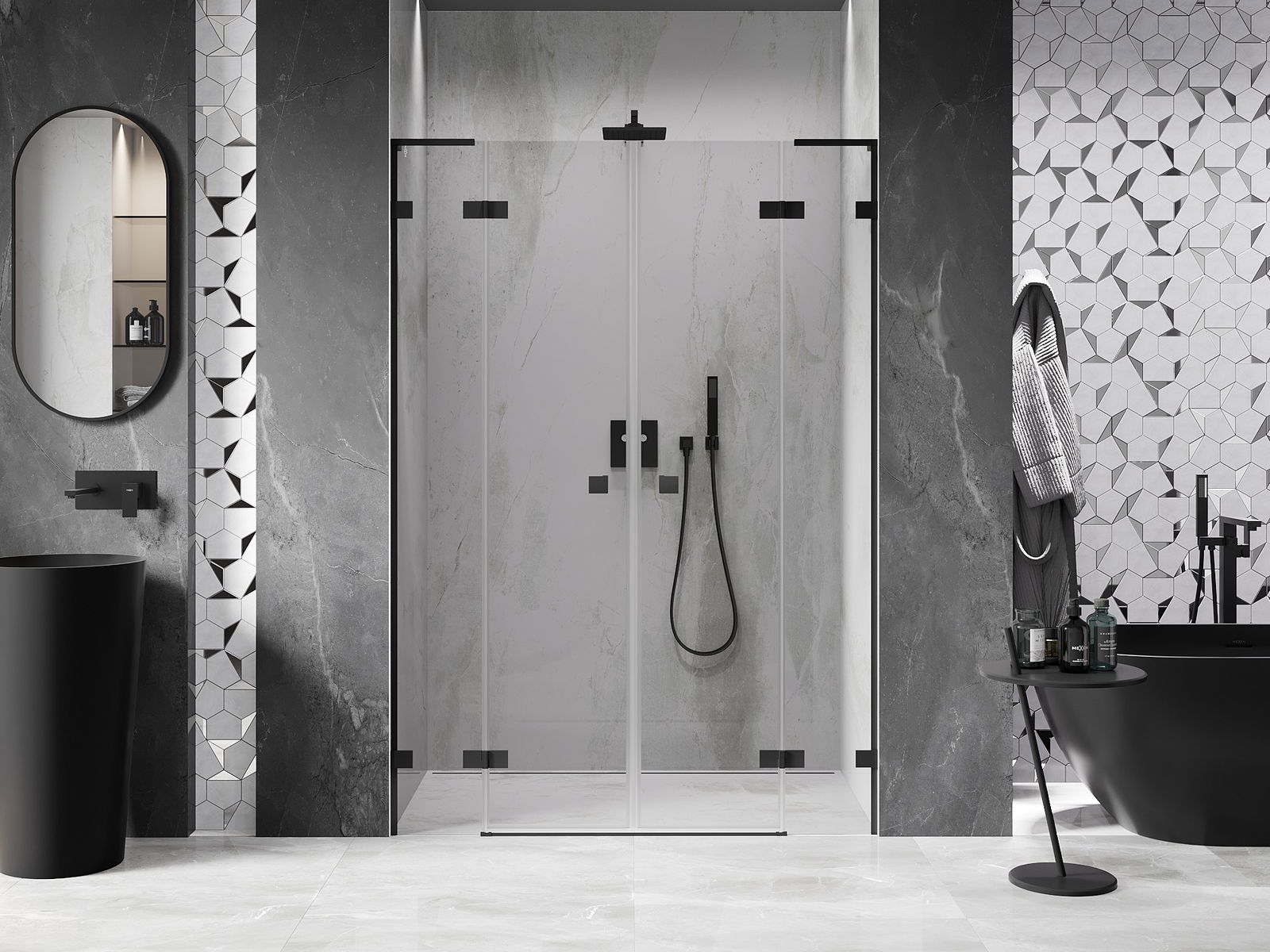 Mexen Rio štvorcový sprchový kút 90 x 90 cm, transparentný, čierny - 860-090-090-70-00