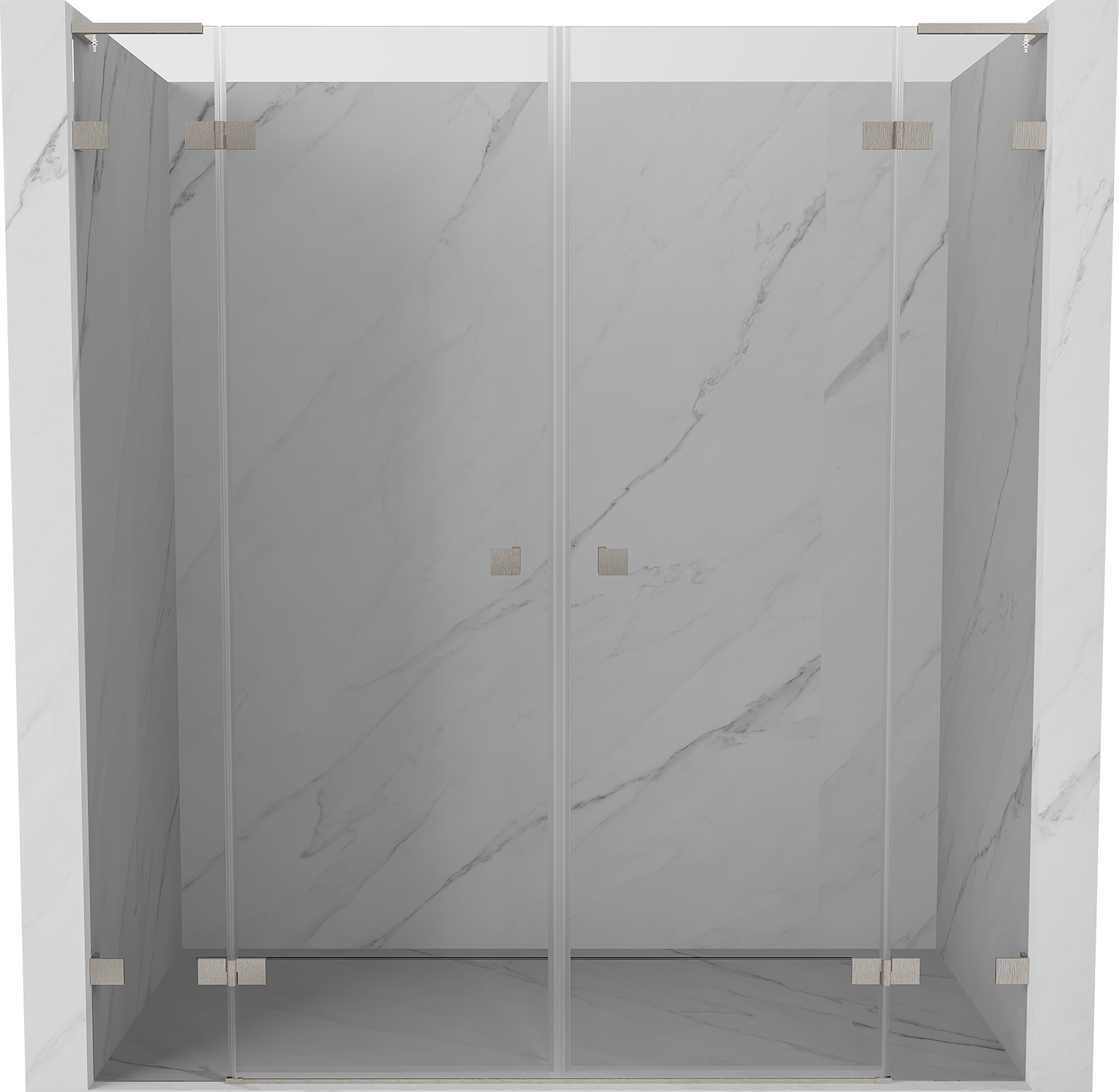 Mosadzné rukoväte a pánty zasadené do plochy skla