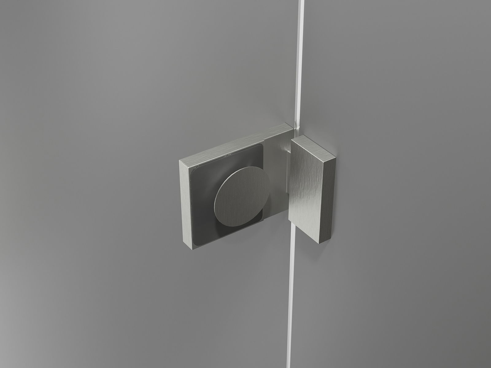 Mosadzné svorky a pánty zapustené do sklenenej tabule