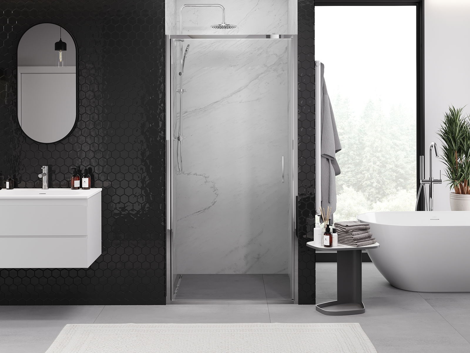 Mexen Rio štvorcový sprchový kút 90 x 90 cm, transparentný, čierny - 860-090-090-70-00