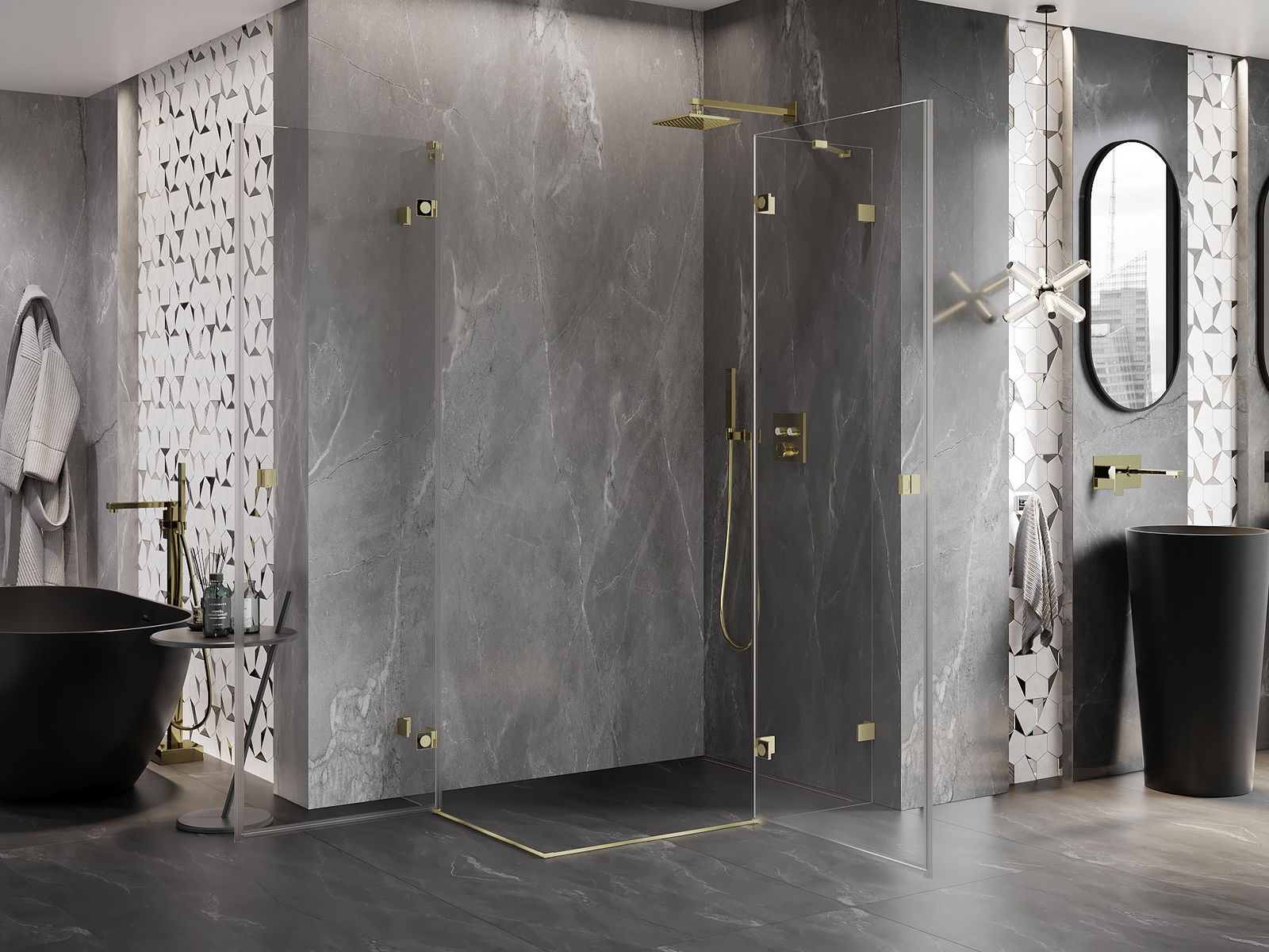 Mosadzné úchyty a pánty v jednej rovine so sklom