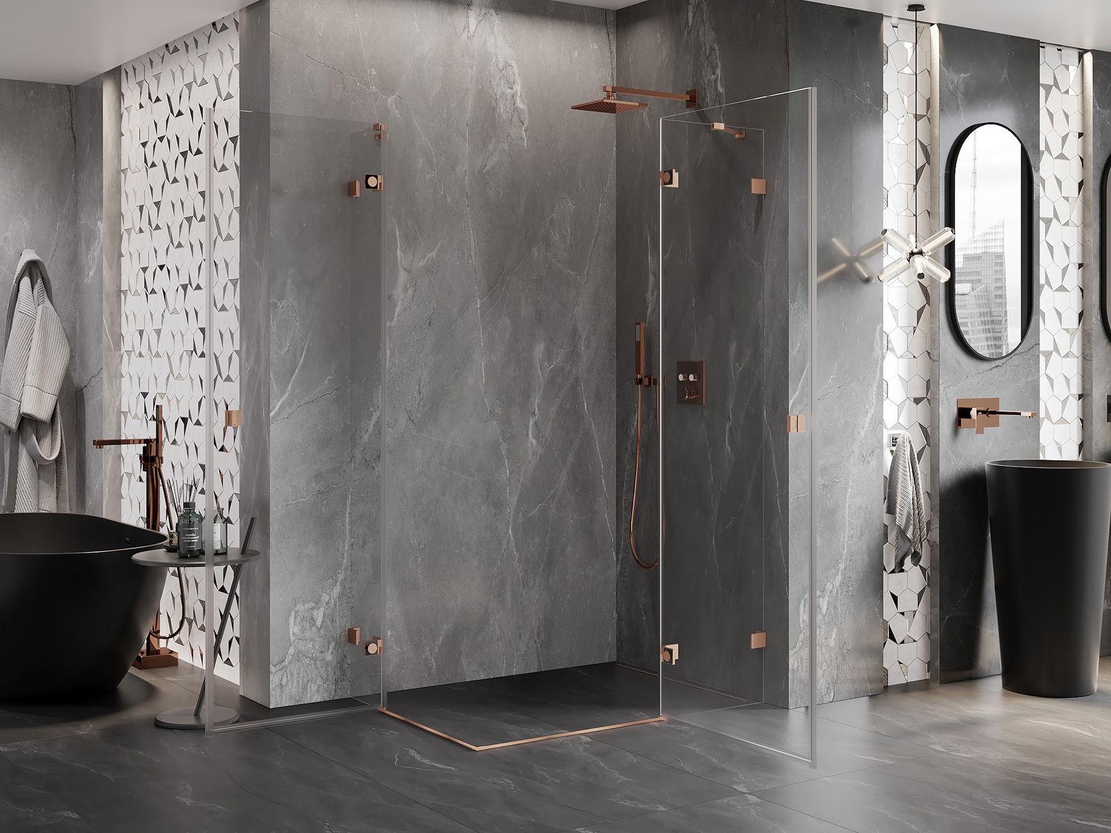 Mexen Lunar Duo sprchová kabína, pravá otváracia 100 x 70 cm, transparentná, brúsená meď - 834-100P-070L-65-00