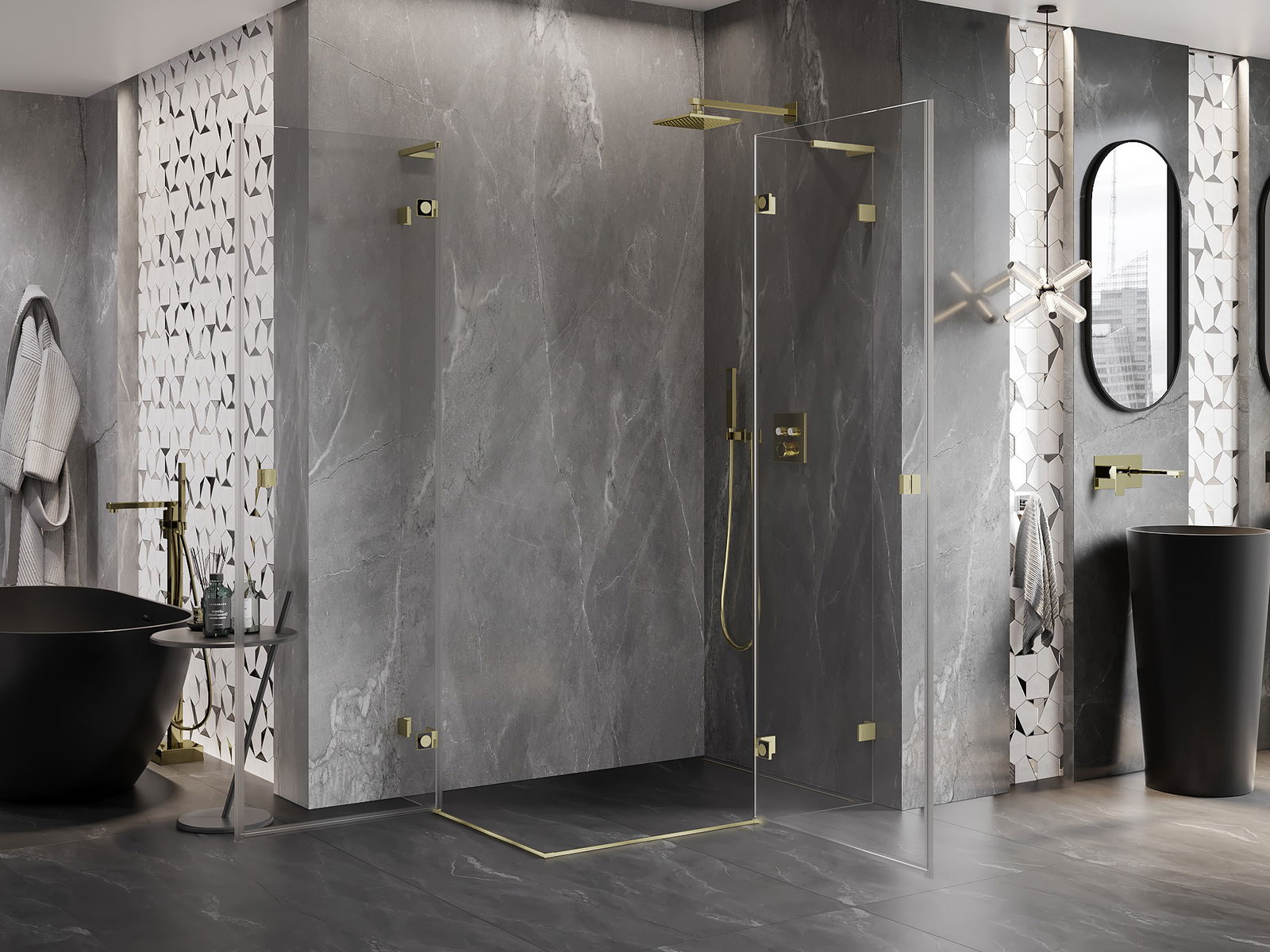 Mexen Lunar L Duo sprchový kút s otváracimi dverami pravý 95 x 70 cm, transparentný, zlatý brúsený - 834L-095P-070L-55-00