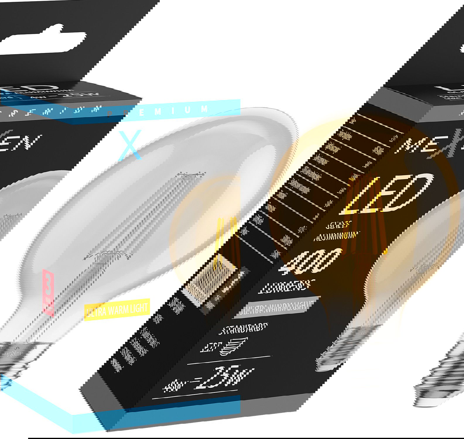 Mexen Vintis LED žiarovka s vláknom E27, G80, 4W, Teplá - 2700K, 400 lm, jantárová - L155-E27-0427-50