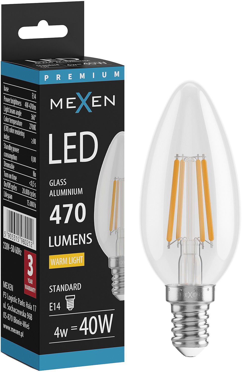 Mexen Vintis LED žiarovka filament E14, C35, 4W, Teplá - 2700K, 470 lm, číra - L154-E14-0427-00