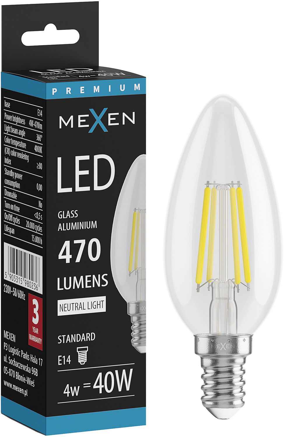 Mexen Vintis LED filament žiarovka E14, C35, 4W, Neutrálna - 4000K, 470 lm, clear - L154-E14-0427-00 - L154-E14-0440-00