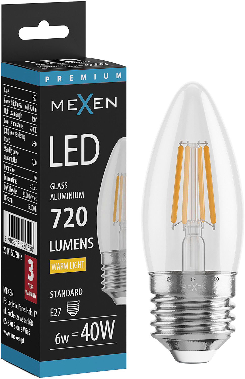 Mexen Vintis LED žiarovka filament E27, C35, 6W, Teplá - 2700K, 720 lm, číra - L154-E27-0627-00