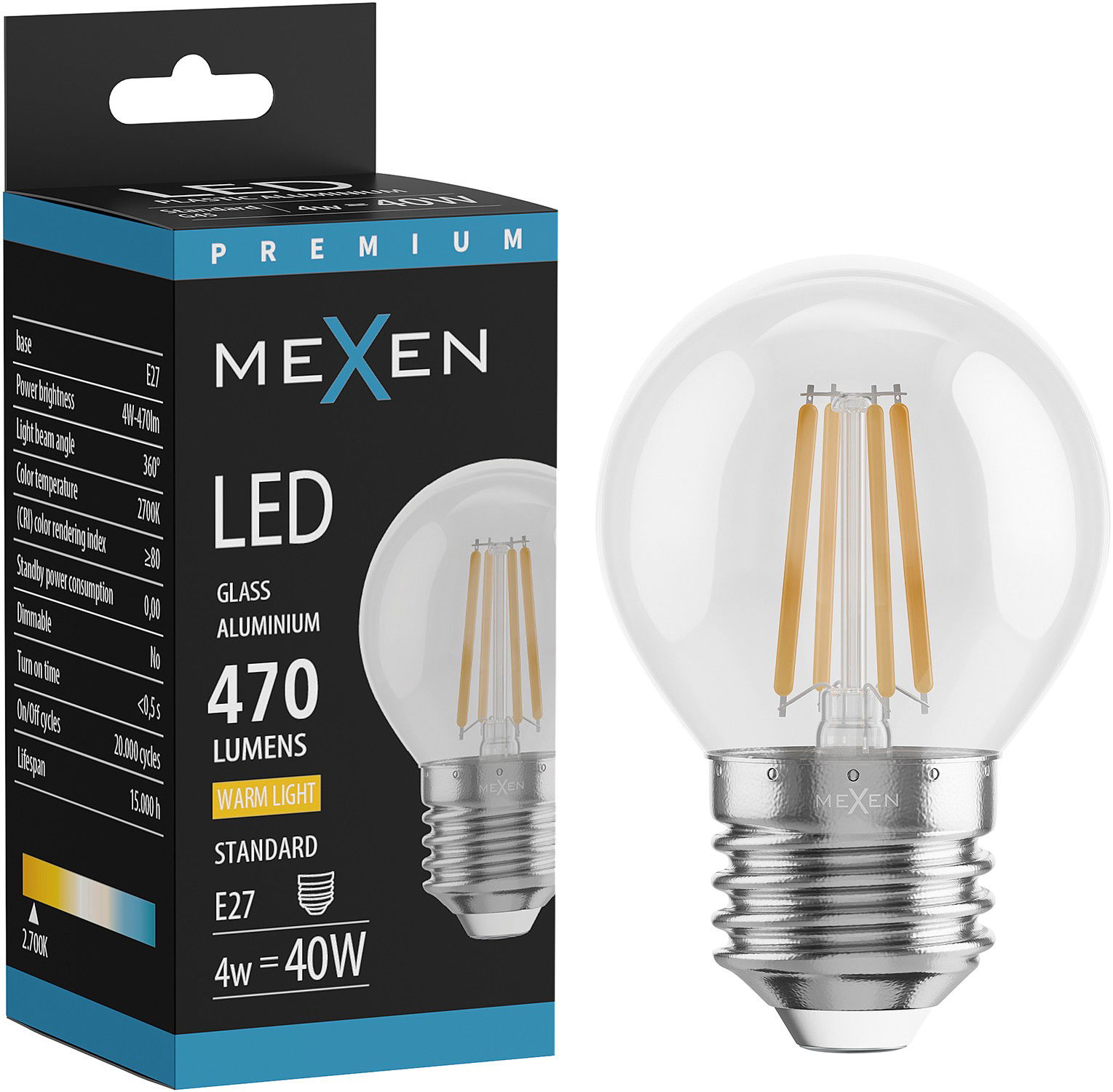 Mexen Vintis LED filamentová žiarovka E27, G45, 4W, Teplá - 2700K, 470 lm, číra - L156-E27-0427-00