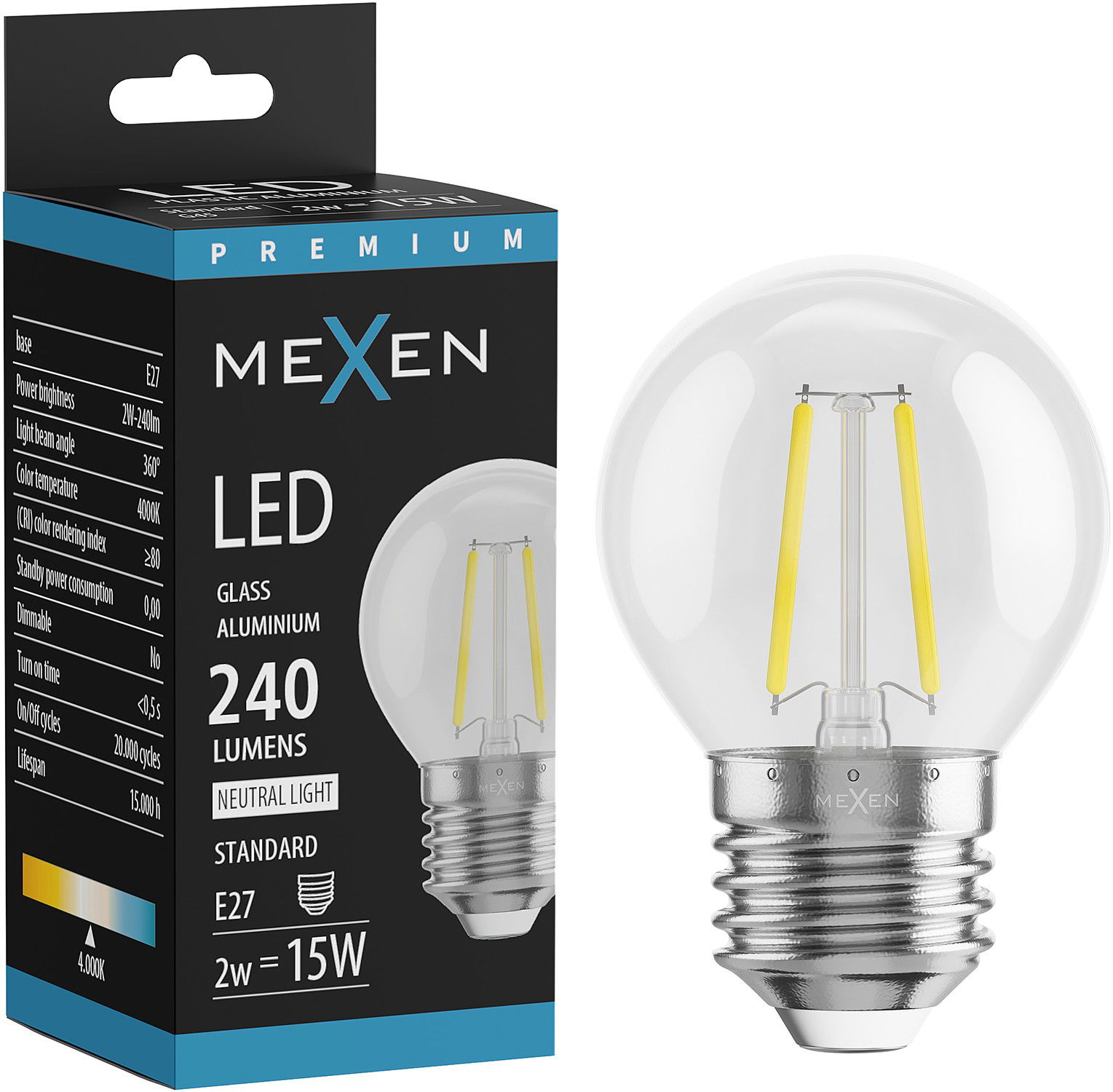 Mexen Vintis LED filamentová žiarovka E27, G45, 2W, Neutrálna - 4000K, 240 lm, číra - L156-E14-0227-00 - L156-E27-0240-00