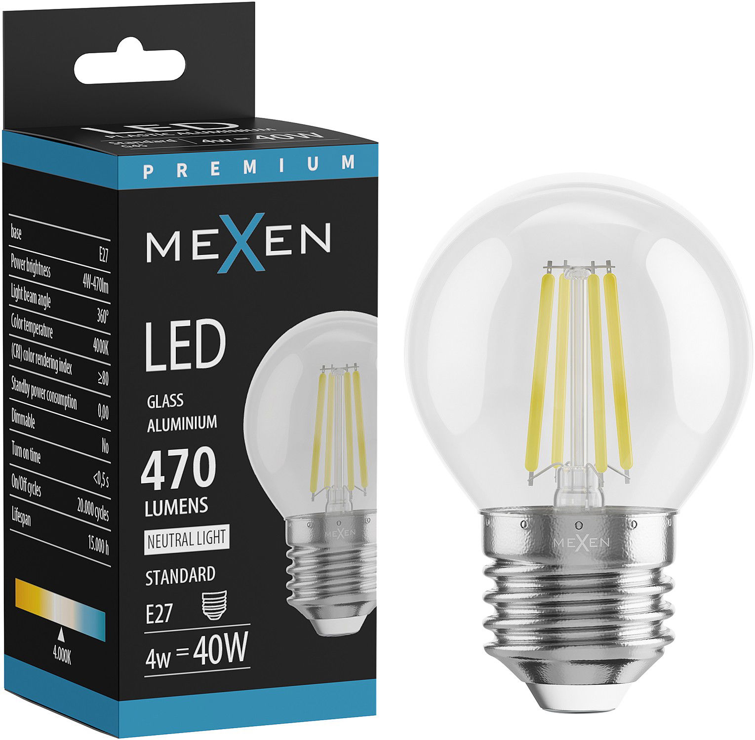 Mexen Vintis LED filamentová žiarovka E27, G45, 4W, Neutrálna - 4000K, 470 lm, číra - L156-E27-0427-00 - L156-E27-0440-00