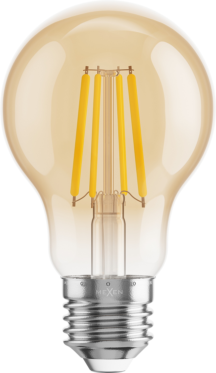 Mexen Vintis LED žiarovka filament E27, A60, 6W, Teplá - 2200K, 600 lm, jantárová - L150-E27-0622-50