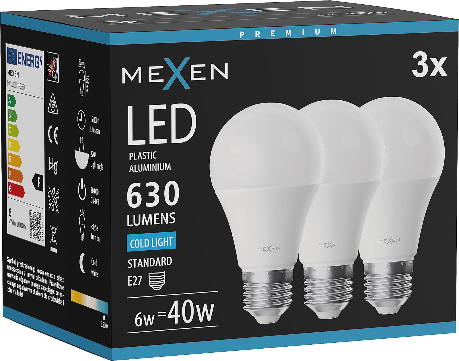 Mexen Nova LED žiarovka E27, A60, 6W, Studená - 6500K, 630 lm - L100-E27-0665-01