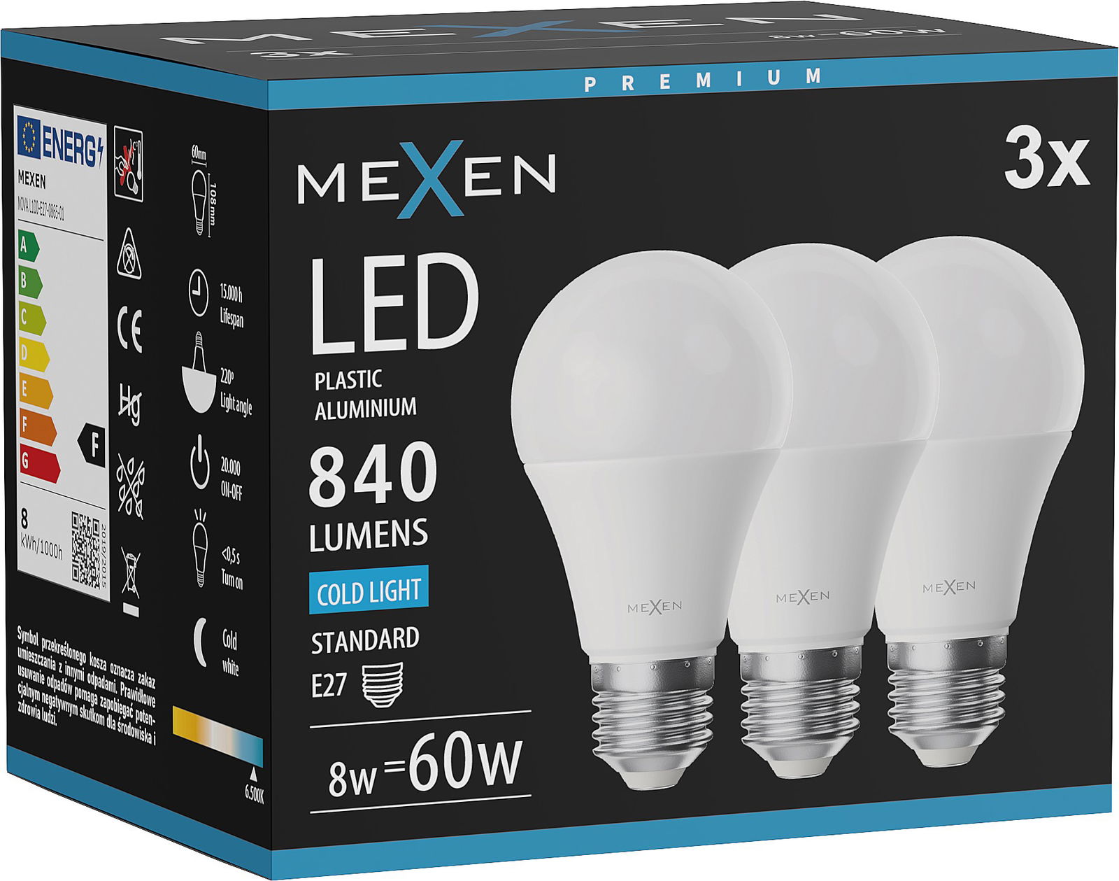 Mexen Nova LED žiarovka E27, A60, 6W, Studená - 6500K, 630 lm - L100-E27-0665-01