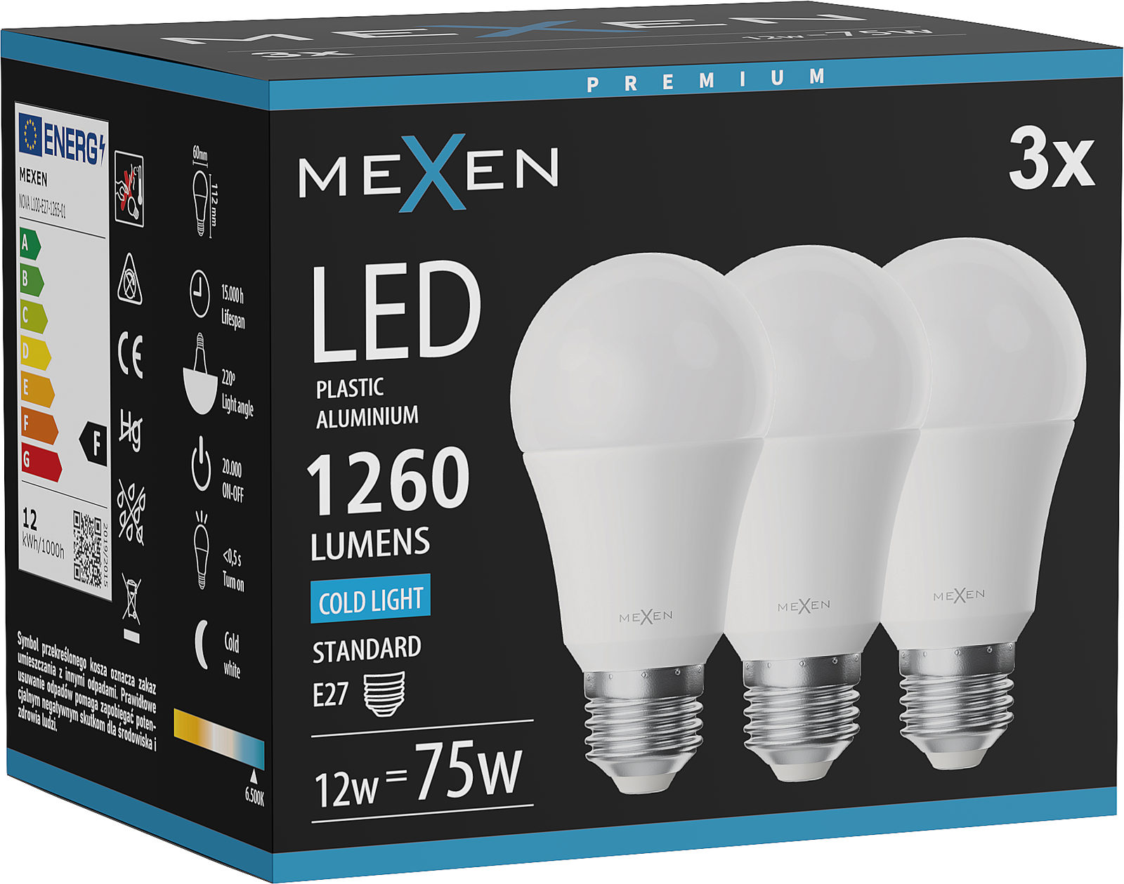 Mexen Nova LED žiarovka E27, A60, 6W, Studená - 6500K, 630 lm - L100-E27-0665-01