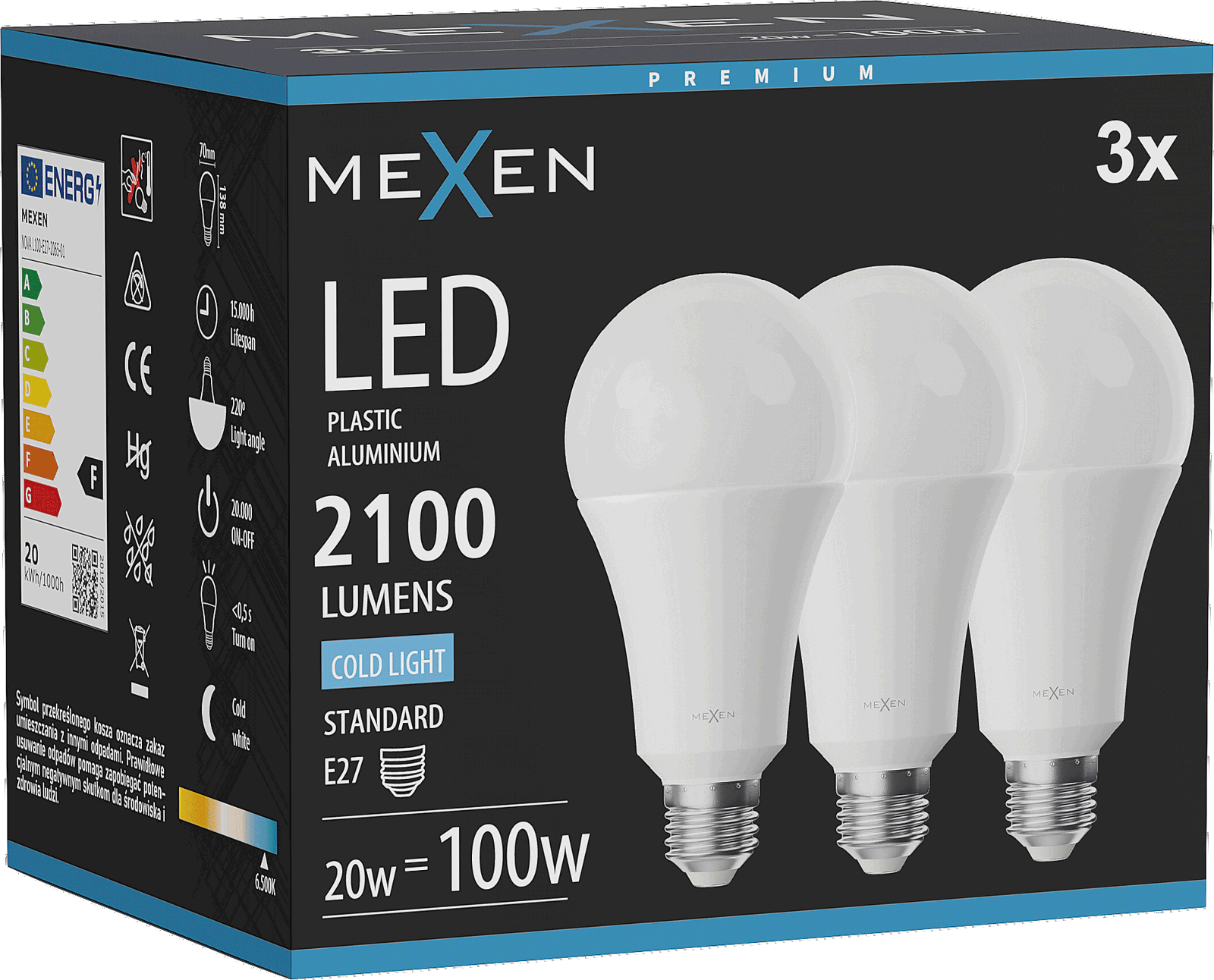 Mexen Nova LED žiarovka E27, A60, 6W, Studená - 6500K, 630 lm - L100-E27-0665-01