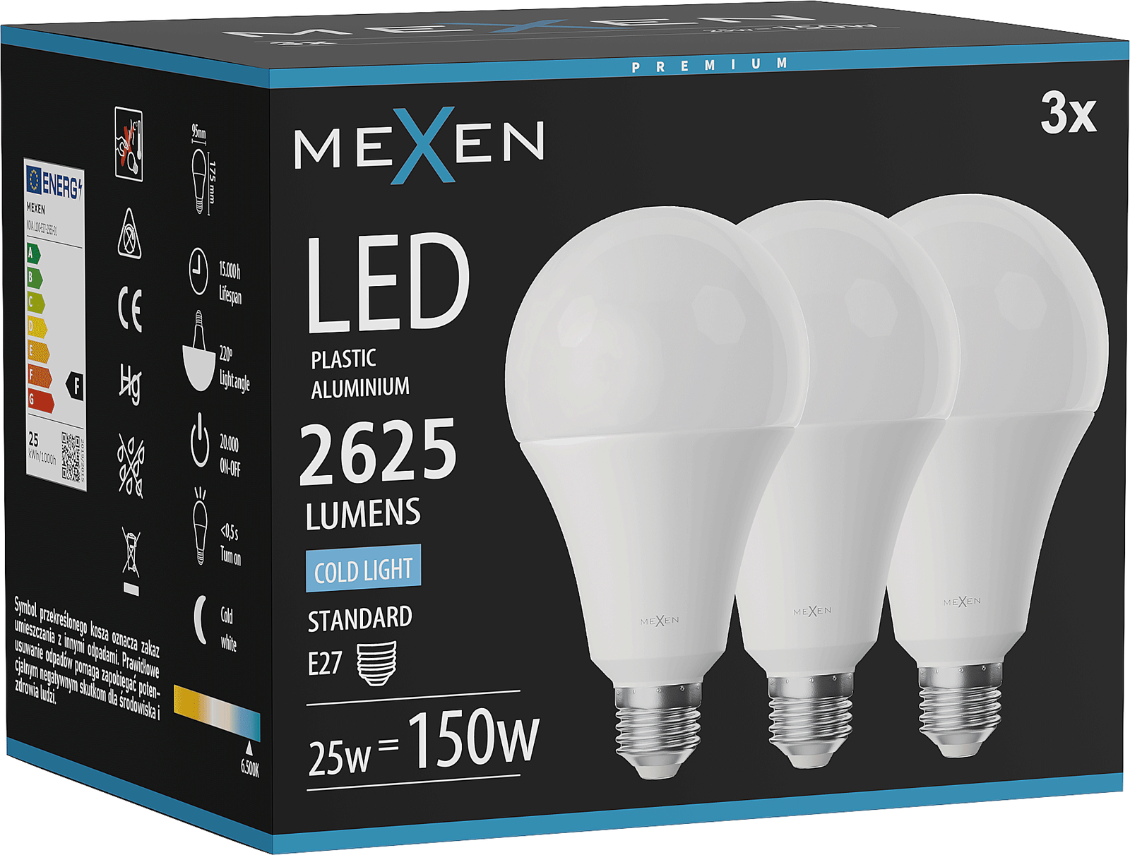 Mexen Nova LED žiarovka E27, A60, 6W, Studená - 6500K, 630 lm - L100-E27-0665-01