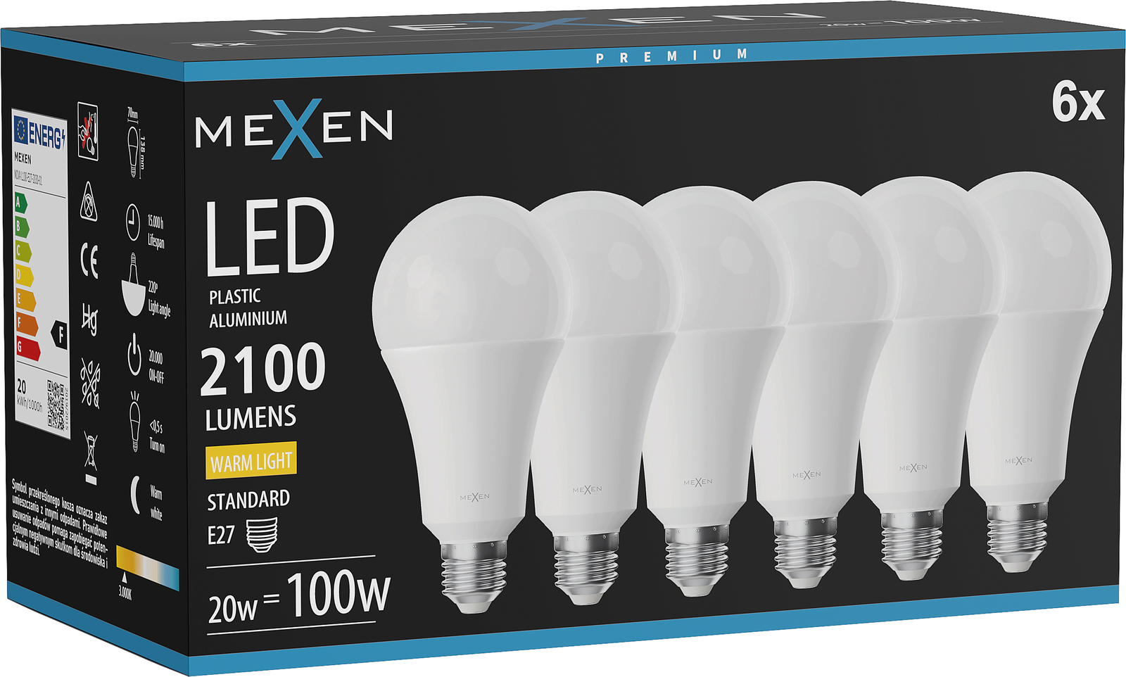 Mexen Nova LED žiarovka E27, A60, 6W, Teplá - 3000K, 630 lm - L100-E27-0630-01