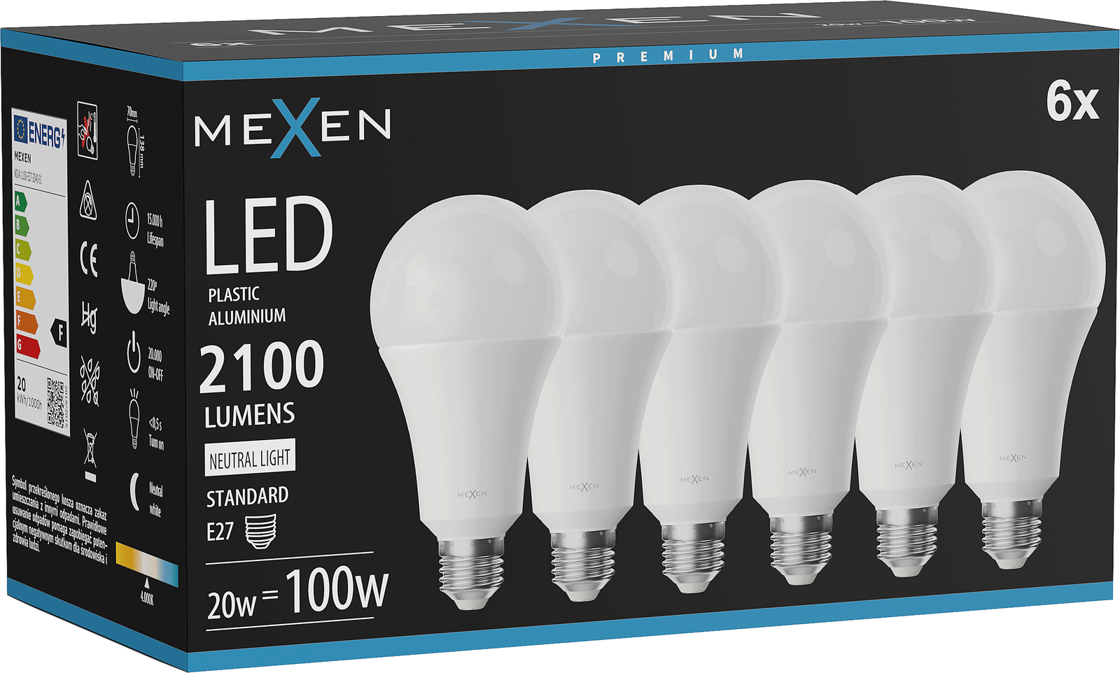 Mexen Nova LED žiarovka E27, A60, 6W, Neutrálna - 4000K, 630 lm - L100-E27-0640-01