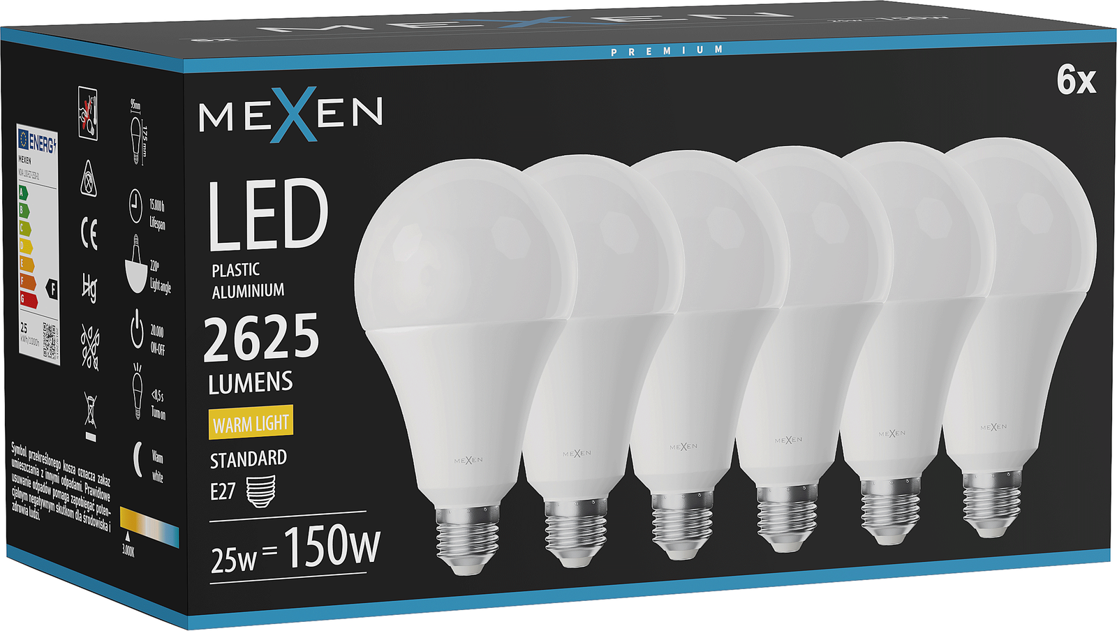 Mexen Nova LED žiarovka E27, A60, 6W, Teplá - 3000K, 630 lm - L100-E27-0630-01